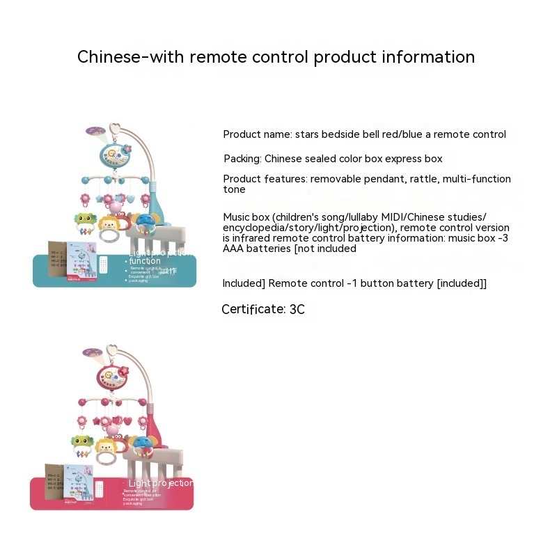 Product features: detachable pendant, ringing bell, multifunctional music box (nursery rhyme/melody/song/lighting/projection)