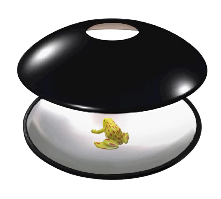 2. Place the frog in the middle of the bottom cover and then cover the top cover.