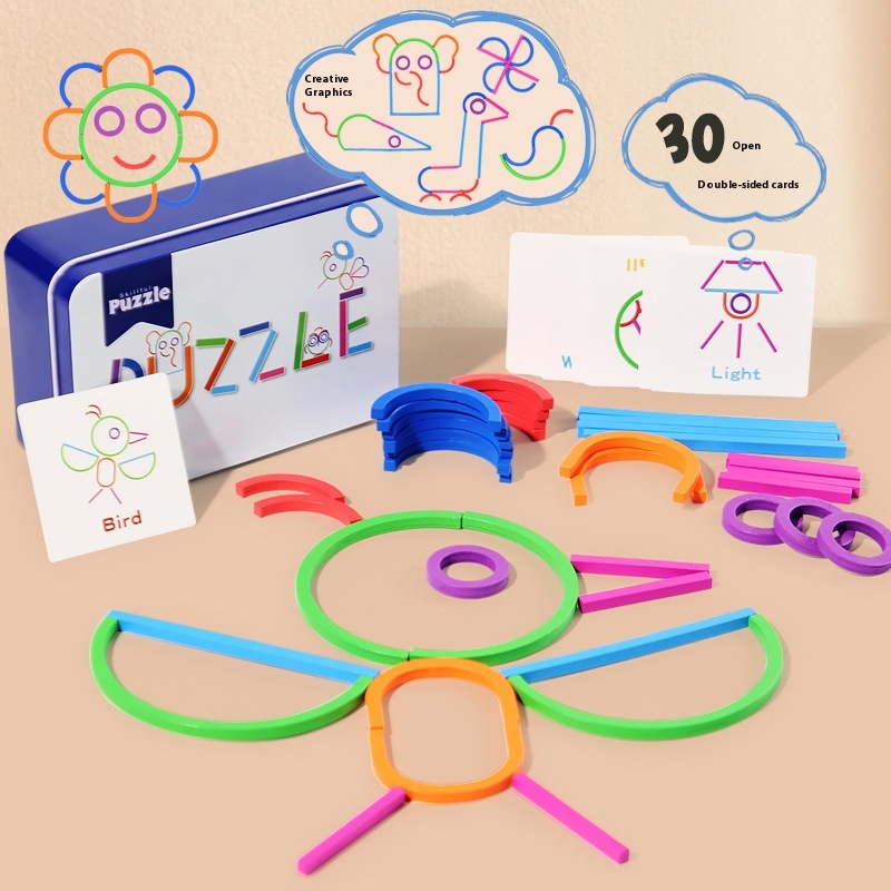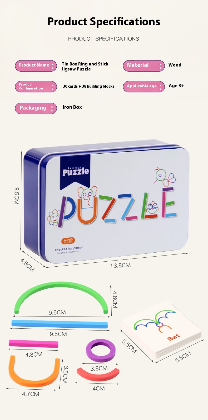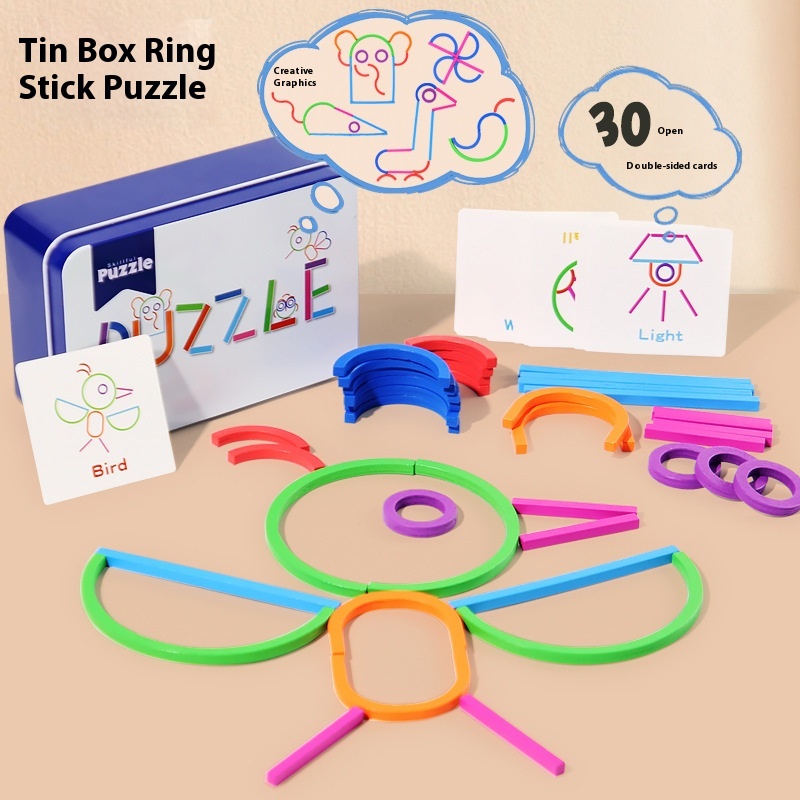 Color: [package 1] Creative ring sticker iron box puzzle paper card 30 double-sided 60 patterns in total, [package 1] cut and paste beads digital color matching iron box storage 20 card patterns