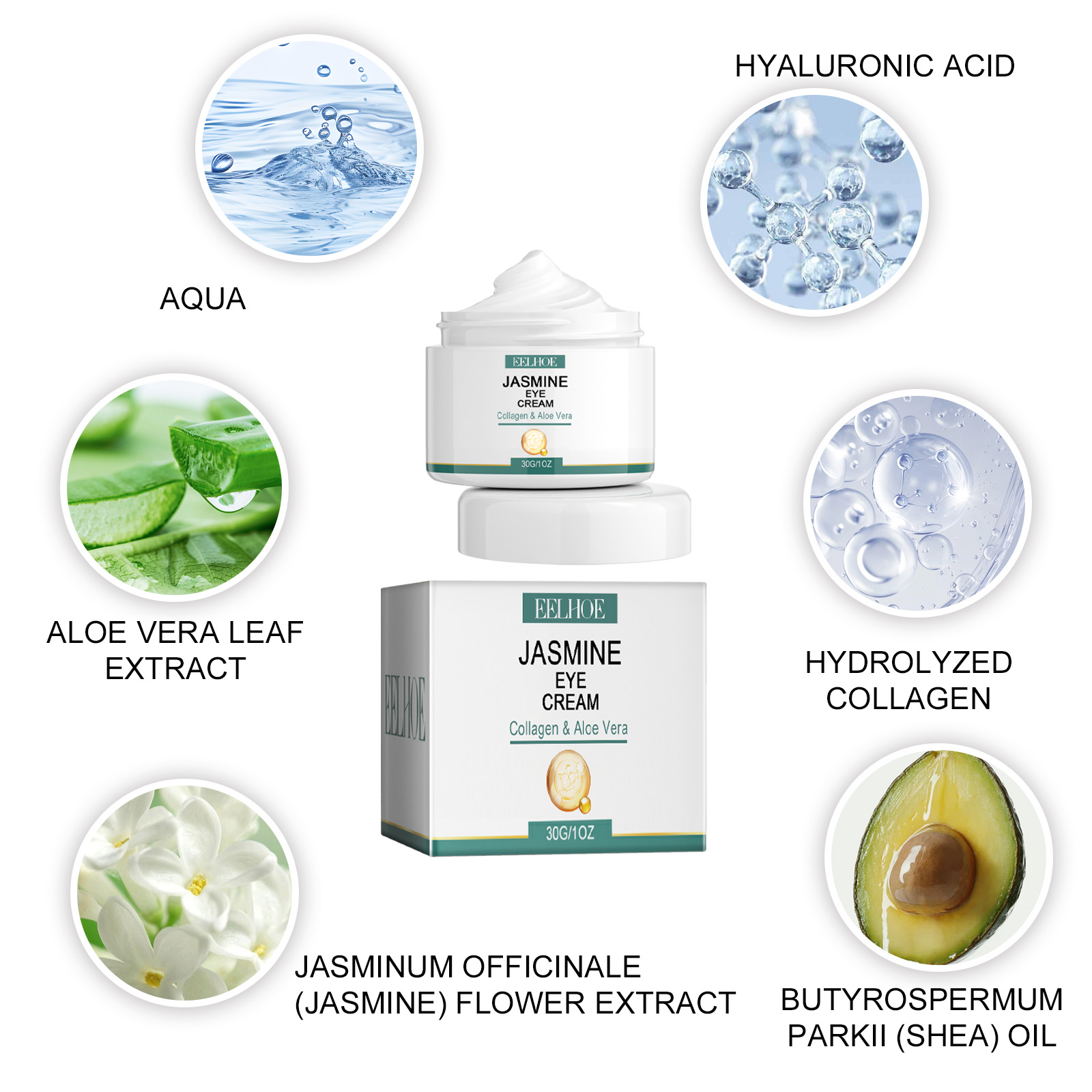 Our anti-wrinkle eye cream contains collagen, hyaluronic acid and jasmine flower extract. It can make the eyes glow with youth, adjust the skin water and oil balance, even the skin tone; Deep water, smooth fine lines, remove fat particles around the eyes; Replenish collagen around eyes, reduce dark spots and acne marks, and make skin smoother. Its use method is very simple: 1. After cleansing and toning in the morning and evening, take appropriate amount of this product and evenly apply it to the eyes. 2. Use your fingertips to massage in a circular motion from outside to inside until it is completely absorbed. Anti-wrinkle eye cream has an instant anti-aging effect, significantly reducing dark circles, bags, wrinkles, puffiness and fine lines. The premium long-lasting face firming, eye Quick Recovery anti-aging cream formula is easier to apply and more evenly applied. The visible dark circles and puffiness under the eyes are instantly lifted, firming, drying and smoothing, making you look younger.