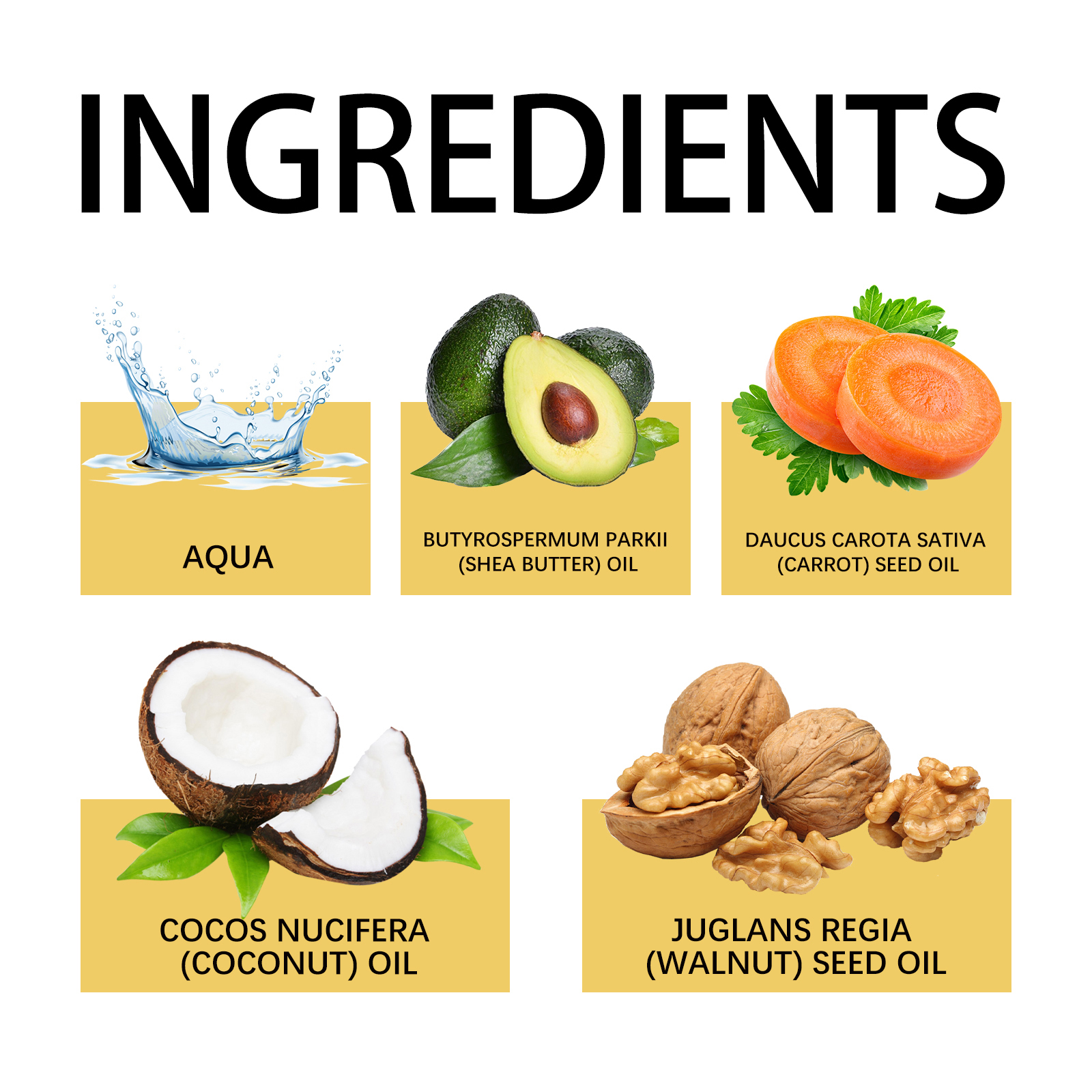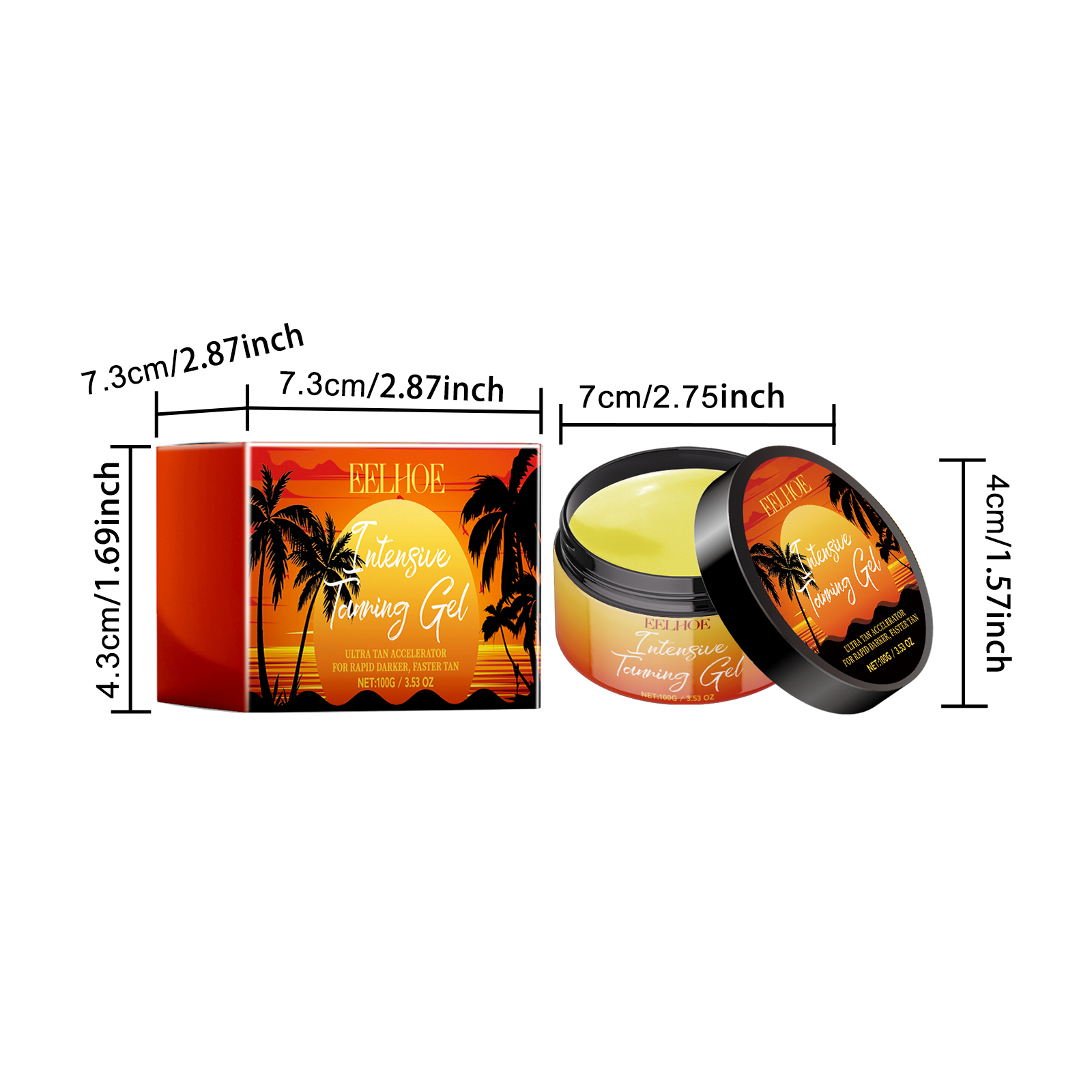 Our Intensive Tanning Gel contains Butyrospermum Parkii (Shea Butter) Oil, Daucus Carota Sativa (Carrot) Seed Oil, Cocos Nucifera (Coconut) Oil. It speeds up the tanning process, gives you a healthy tan, makes you more confident and beautiful, deeply moisturizes the skin, and makes the skin firmer and more moisturized. Its application method is very simple: in order to achieve an even tanning effect, exfoliate the whole body in the scrub before use, and then gently massage the appropriate amount of this product until it is completely absorbed. You can use this product on balconies, lawns, swimming pools, beaches and other sunny places to speed up your skin tanning.