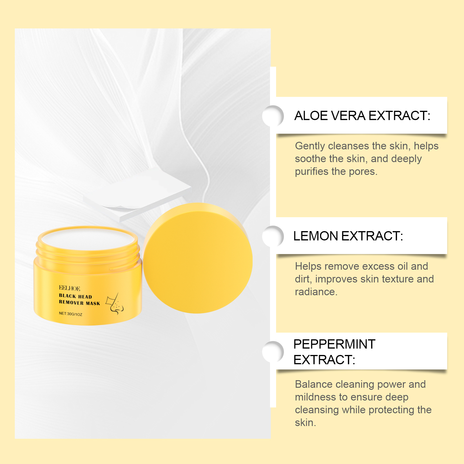 Our blackhead cleansing strips contain aloe vera extract, lemon extract and peppermint extract. It can effectively clean and condition the skin, reduce the formation of acne, and improve the texture of the skin. Its application method is simple: 1. Clean the nose skin and keep it dry. 2. Apply proper amount of the product to the nose skin, take out the strip and stick on the nose. 3. After 5 minutes, peel off the patch, wash with water and keep dry. Aloe Vera essence deeply cleans pores, easily removes blackheads and dirt, and makes skin look clearer and smoother.