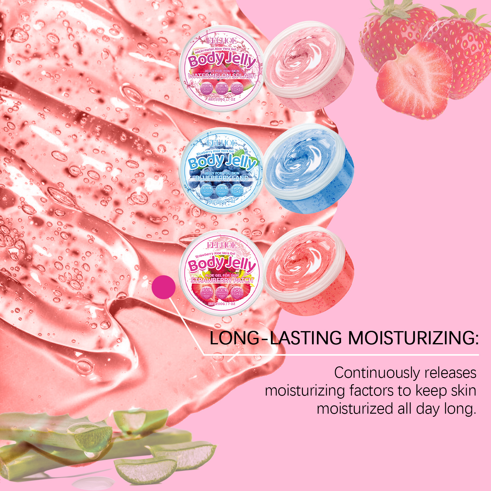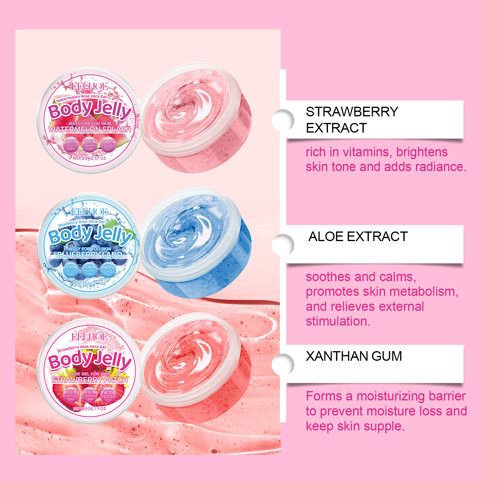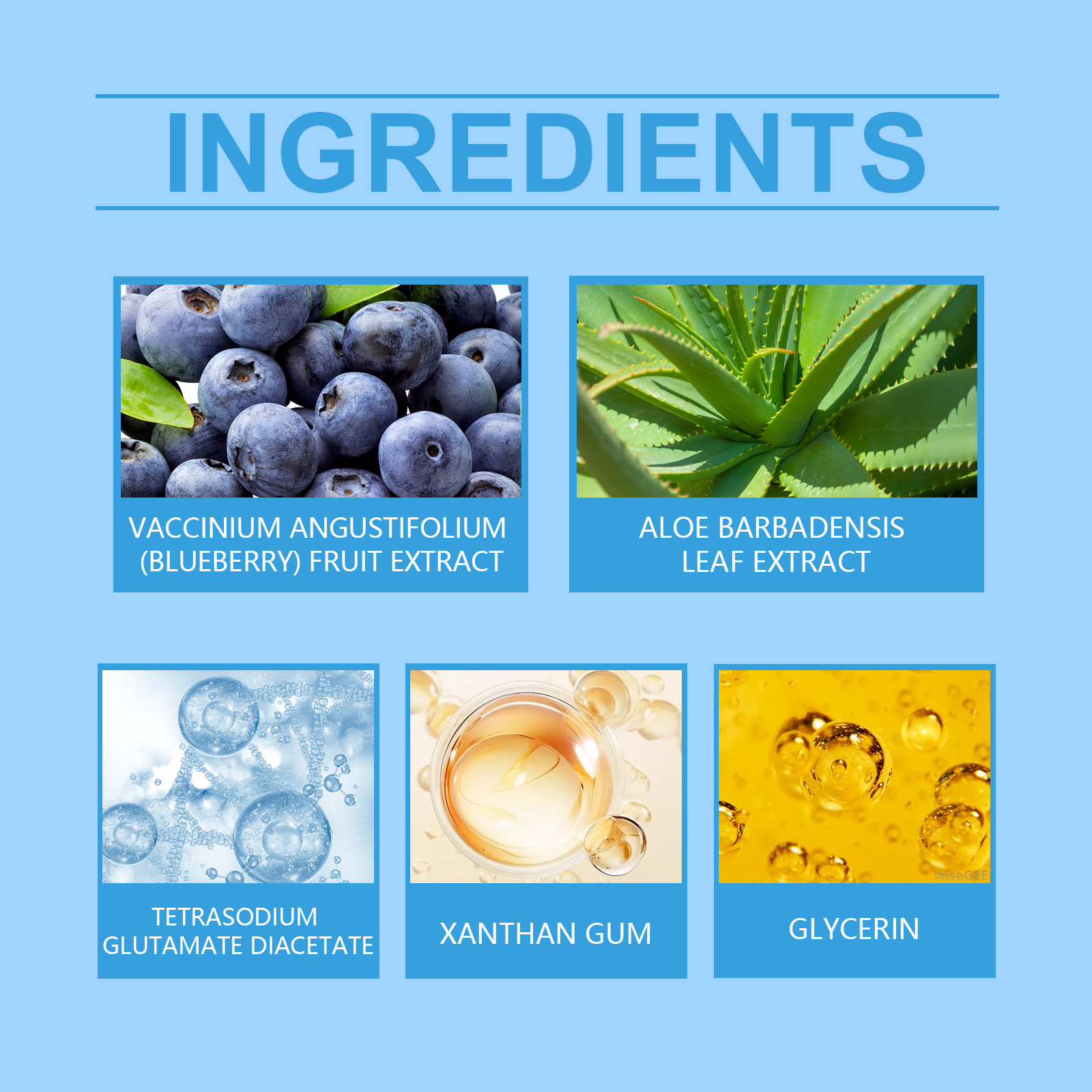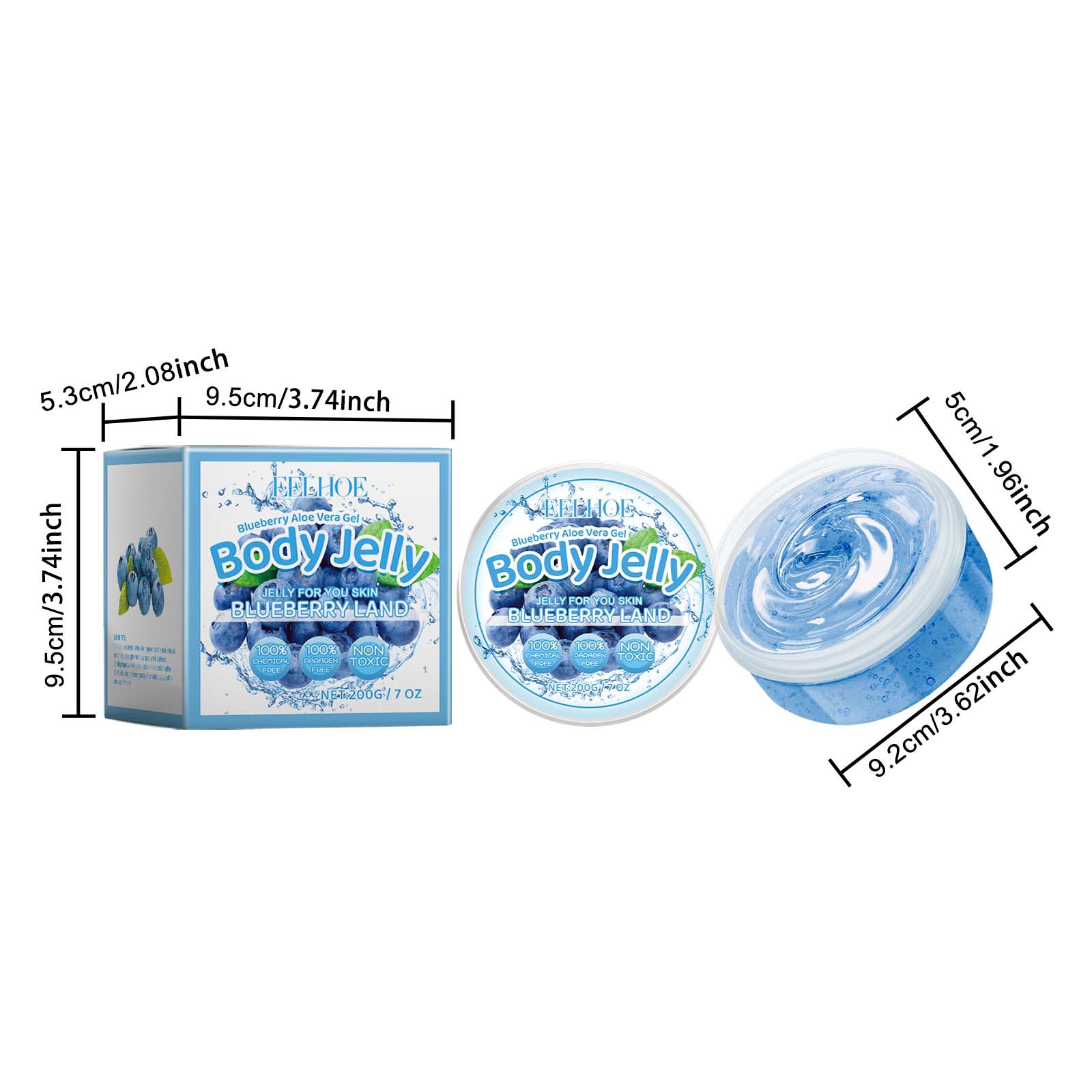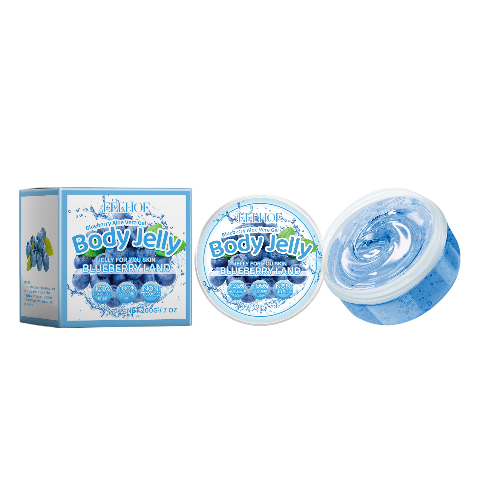 Our jelly body gel contains xanthan gum and glycerin. It can improve skin gloss and make skin look healthier. Gel texture, easily absorbed by the skin, non-sticky. The way to use it is simple: clean the skin. Apply appropriate amount of gel evenly to the skin. Gently massage the skin until the gel is fully absorbed. And the fresh blueberry aroma enhances the pleasure of use.