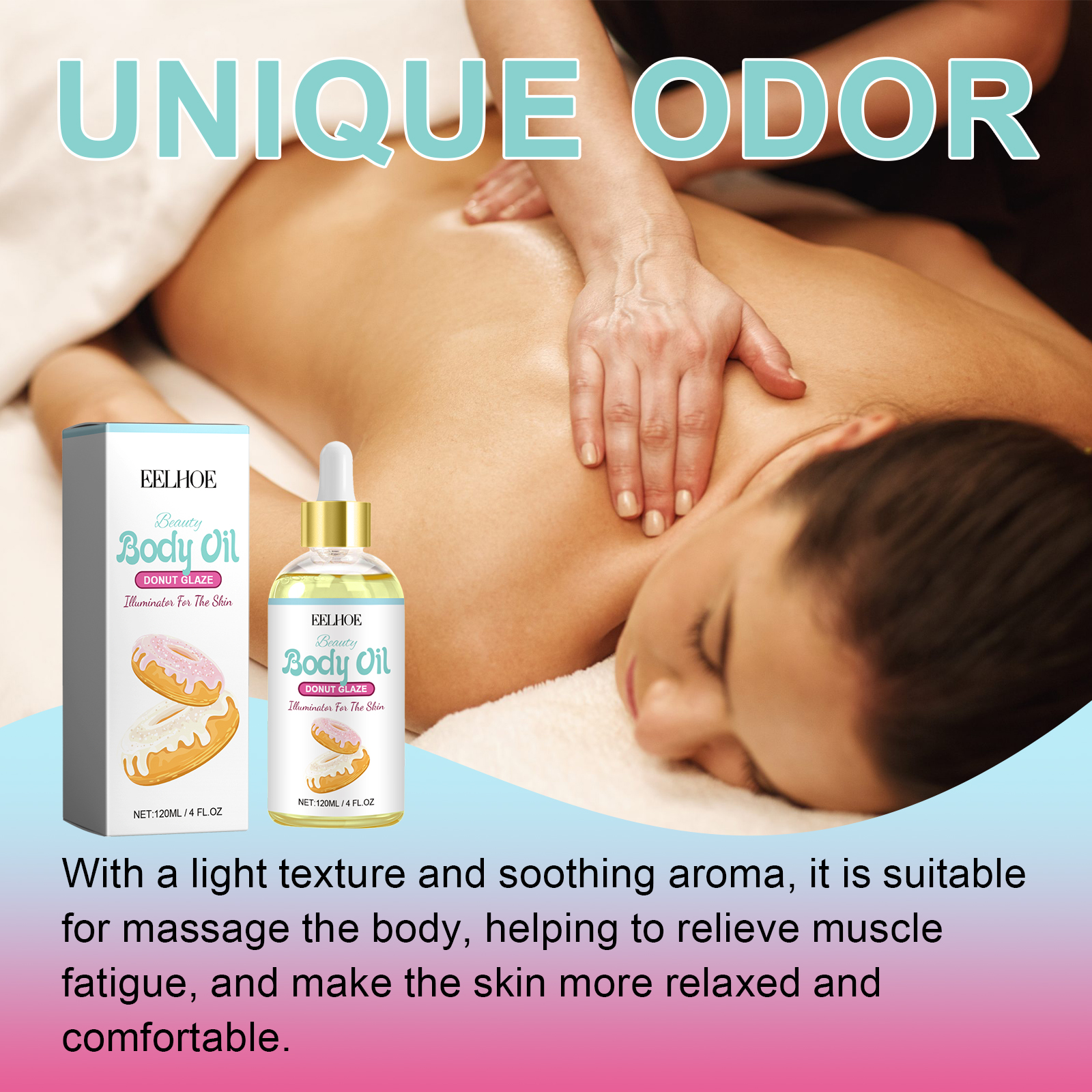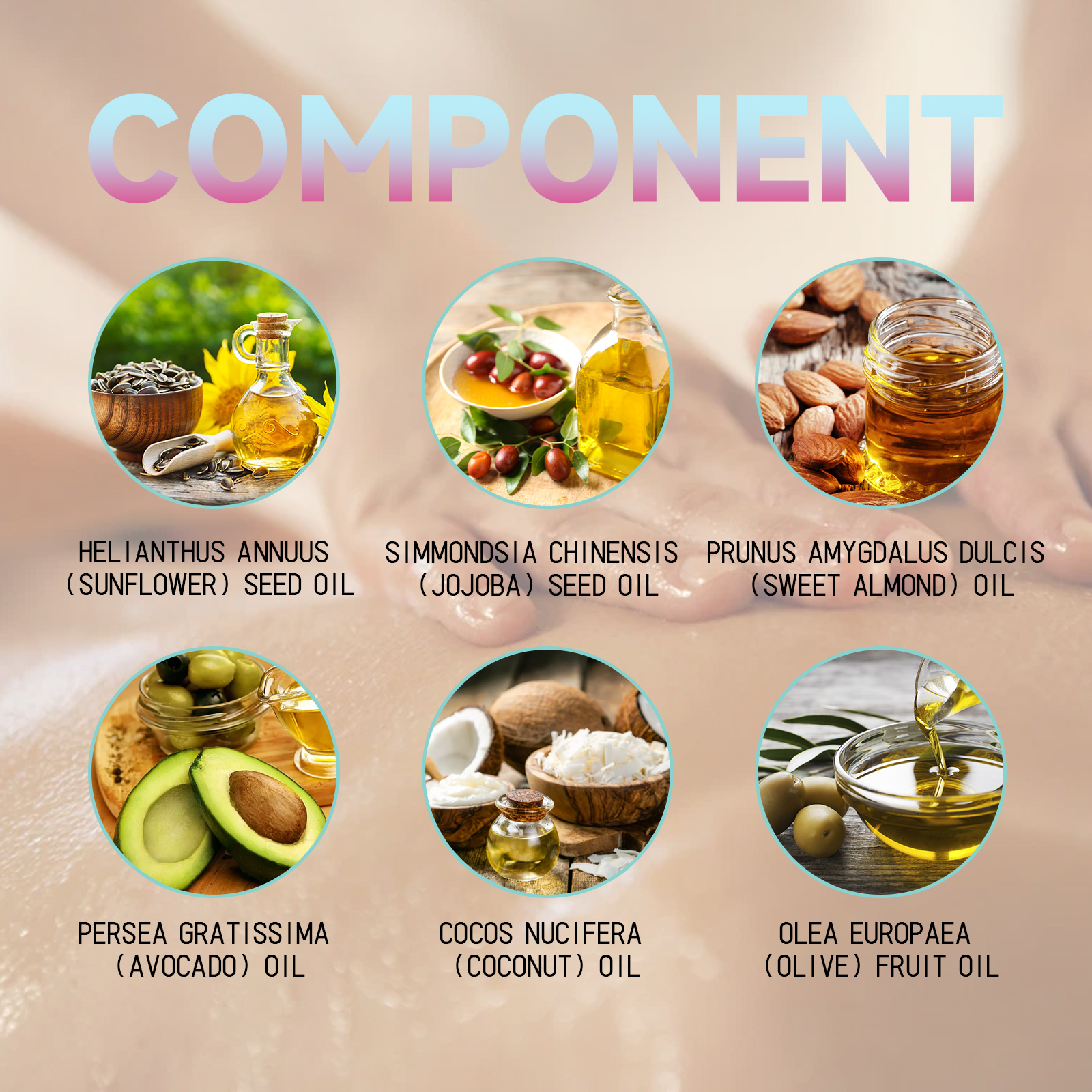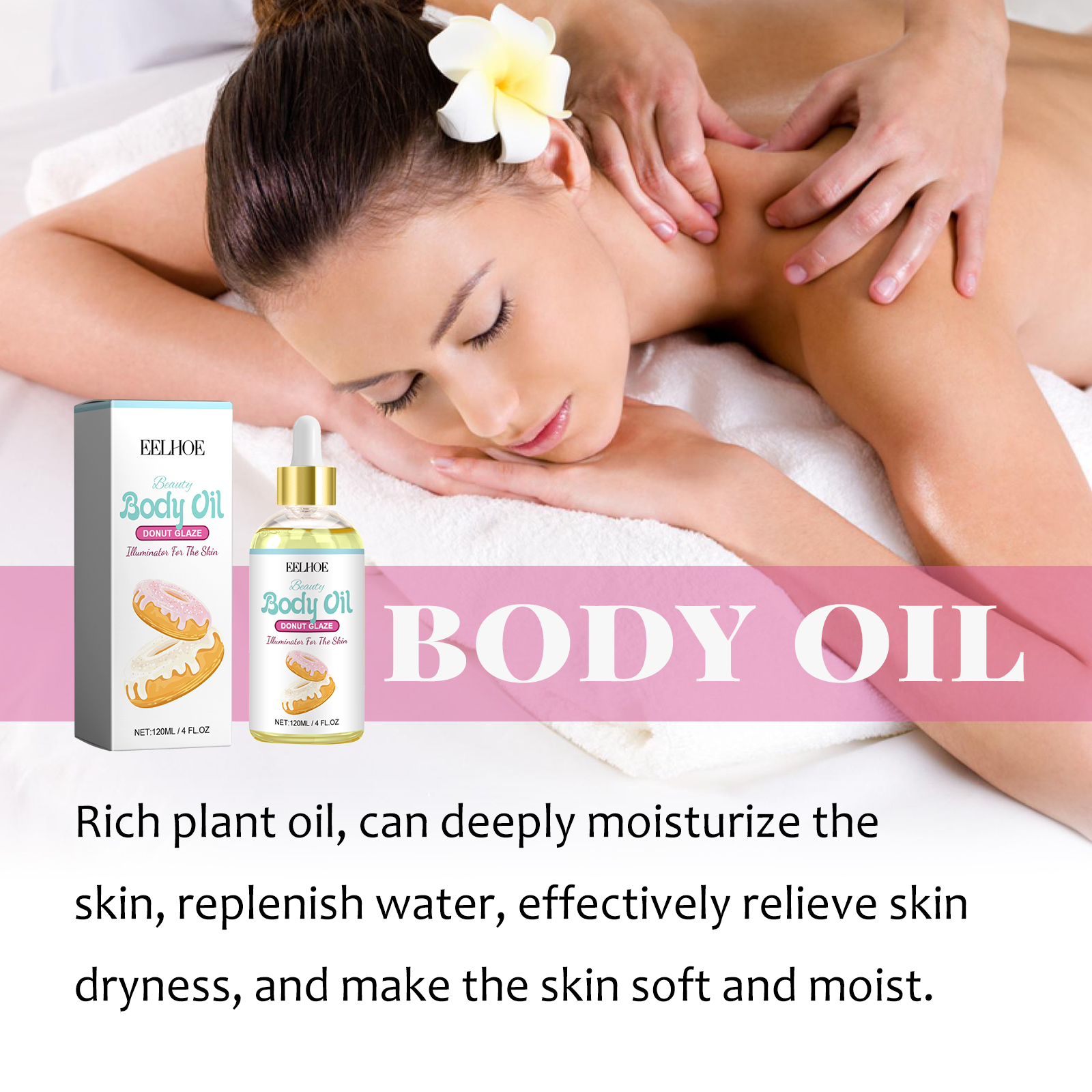 Our Body Oil contain Helianthus Annuus(Sunflowyer) Seed Oil, Simmondsia Chinensis (Jojoba) Seed Oil, Prunus Amygdalus Dulcis (Sweet Almond) Oil. It can deeply moisturize the skin, replenish moisture, effectively relieve dry skin, and make skin soft and moist, help relieve muscle fatigue, and make skin more relaxed and comfortable. Its application method is very simple: clean and dry the skin, apply the appropriate amount of essential oil evenly on the body skin, gently massage until completely absorbed. It can increase skin elasticity and strengthen skin tightness.