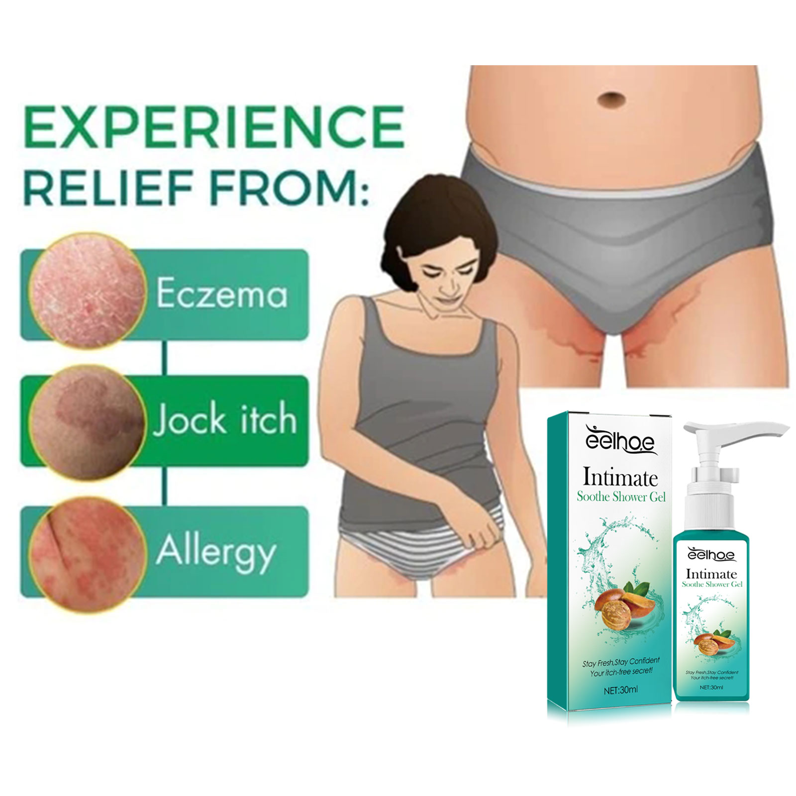 Our body wash contains lemon extract and wormwood extract. It can solve the discomfort of itching genitals. Its application is simple: wet the skin of the private area with warm water, apply a proper amount of the product to the skin, massage and clean with your hands using gentle circular motions, and finally, rinse off the foam with water. And it cleans the body.