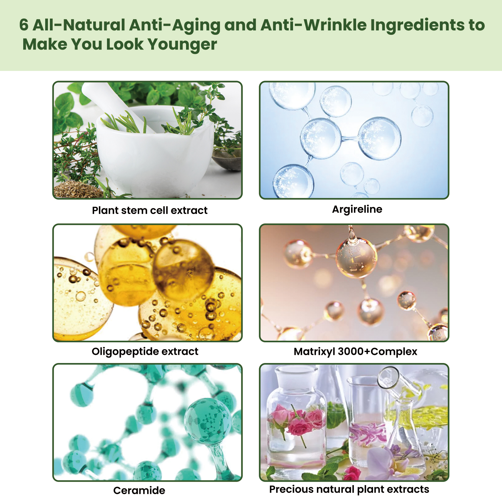 Our ceramide firming serum contains plant stem cell extract, oligopeptide extract, ceramide. It helps to deep maintain and fade wrinkles. Its application is simple: apply it every morning and evening after cleansing, massage 3 to 4 drops onto the face and neck, it is suitable for all skin types, and you can mix it with other ingredients. This serum is safe for all skin types, including sensitive skin. Stimulate collagen production, eliminate wrinkles, repair damaged skin, moisturize and whiten.