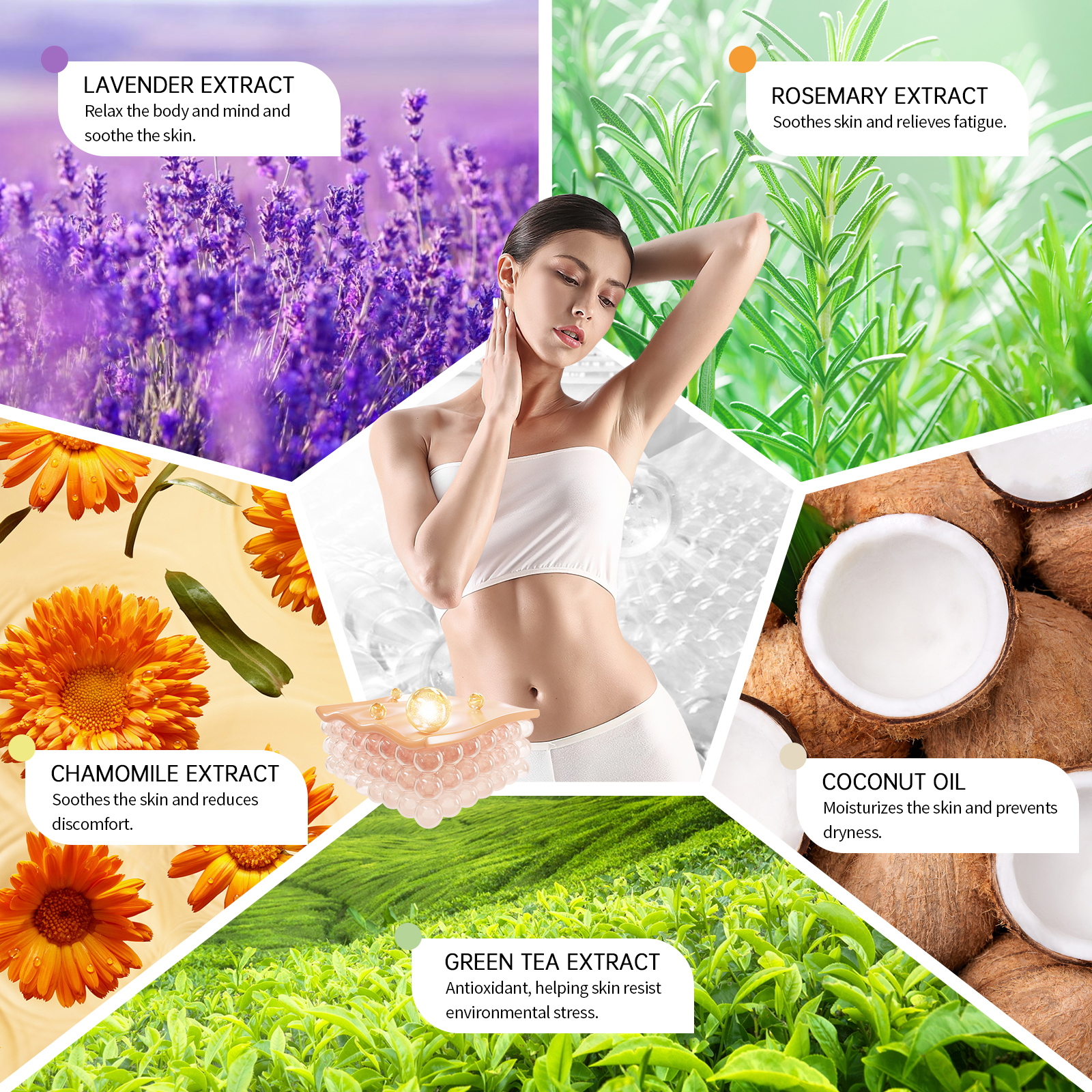 Our scrub bath salts contain glycerin, sea salt and coconut oil. It traps moisture and keeps skin soft and moist. Aloe vera leaf extract soothes the skin and reduces irritation. Its application method is very simple: 1. Moisturize the skin with warm water. 2. Apply appropriate amount of bath salts to the wet skin and gently massage in circular motions; 3. Rinse your body with warm water. Fine sea salt particles gently remove dead skin, revealing smooth skin. Sea salt particles can effectively remove dead skin on the surface of the skin and make the skin smooth.