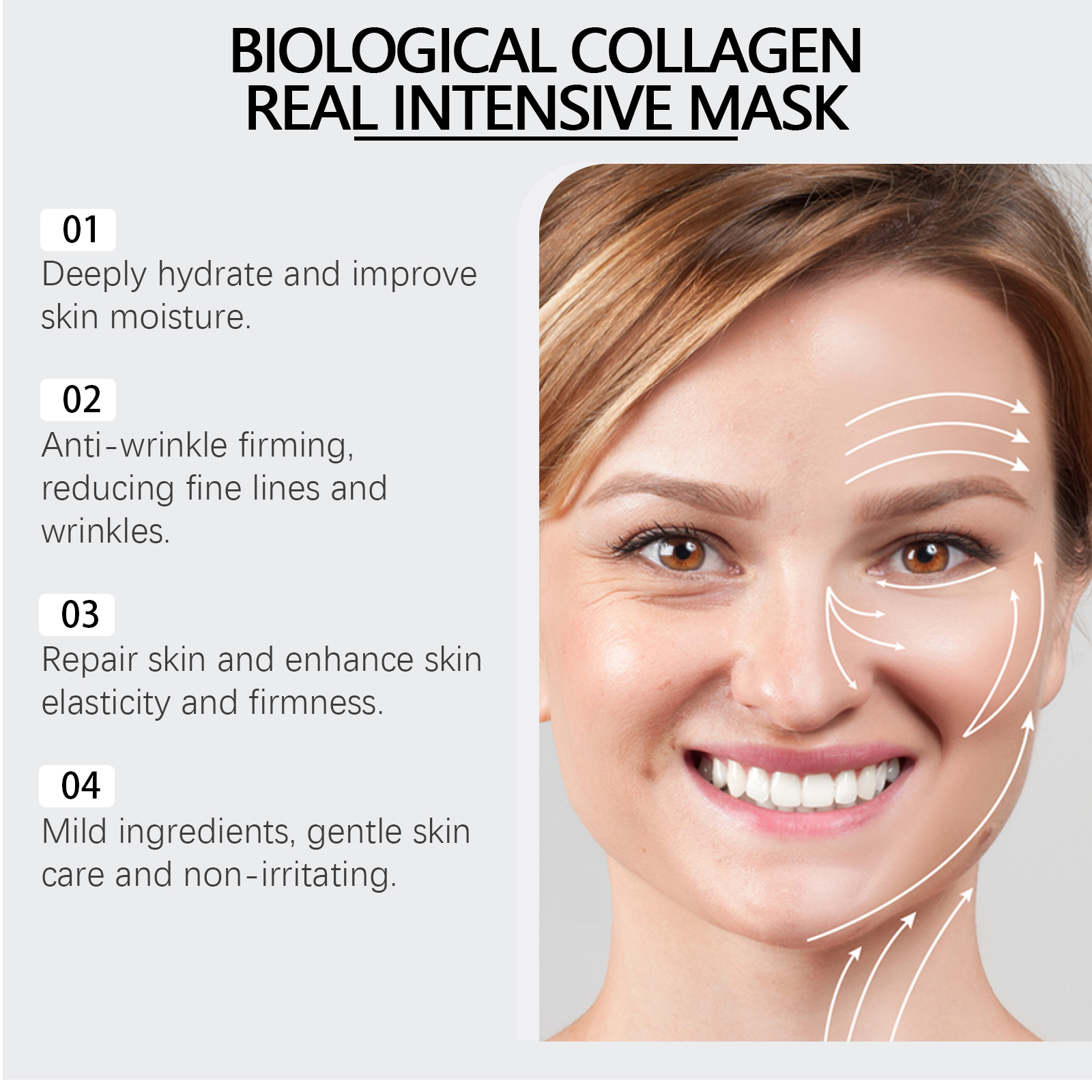 Our firming collagen mask (bag) contains tocopherol (vitamin E) and glycerin. It can effectively improve skin elasticity and reduce fine lines and wrinkles. Its usage method is very simple: Thoroughly clean your facial skin, take out the mask, apply it to your facial skin and leave it on for 15 to 20 minutes to allow the essence to be fully absorbed. Then remove the mask and wash it off with clean water. And it can anti-wrinkle and firm, reducing fine lines and wrinkles.