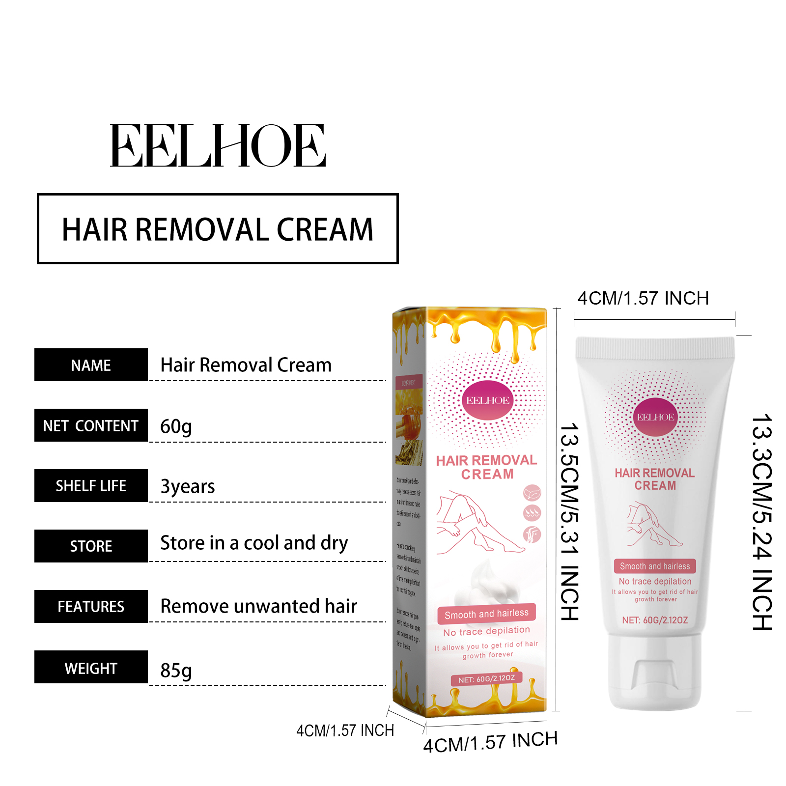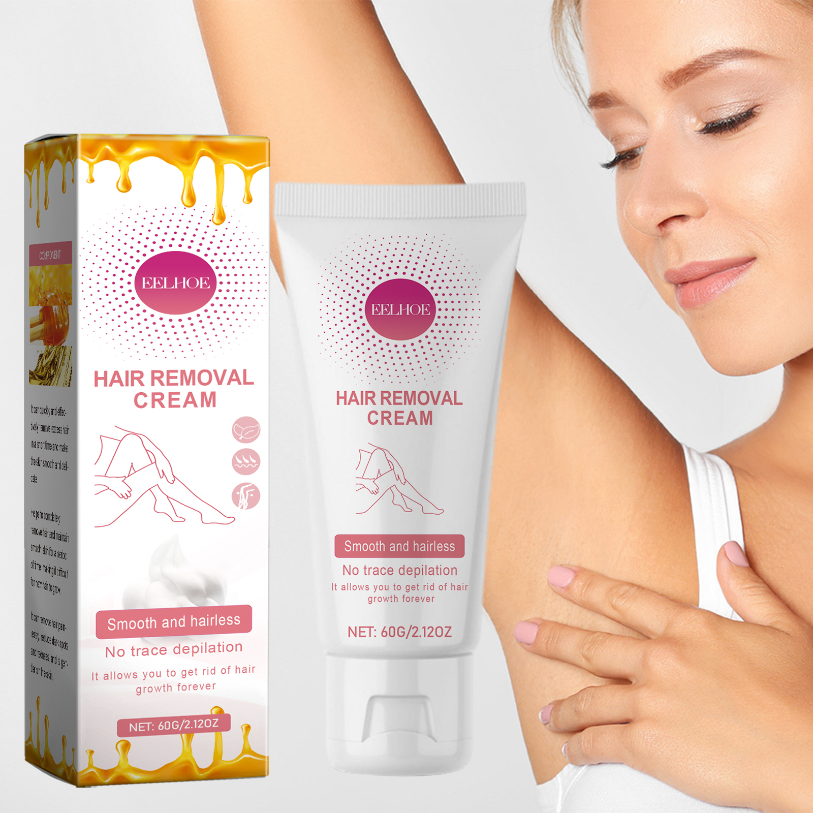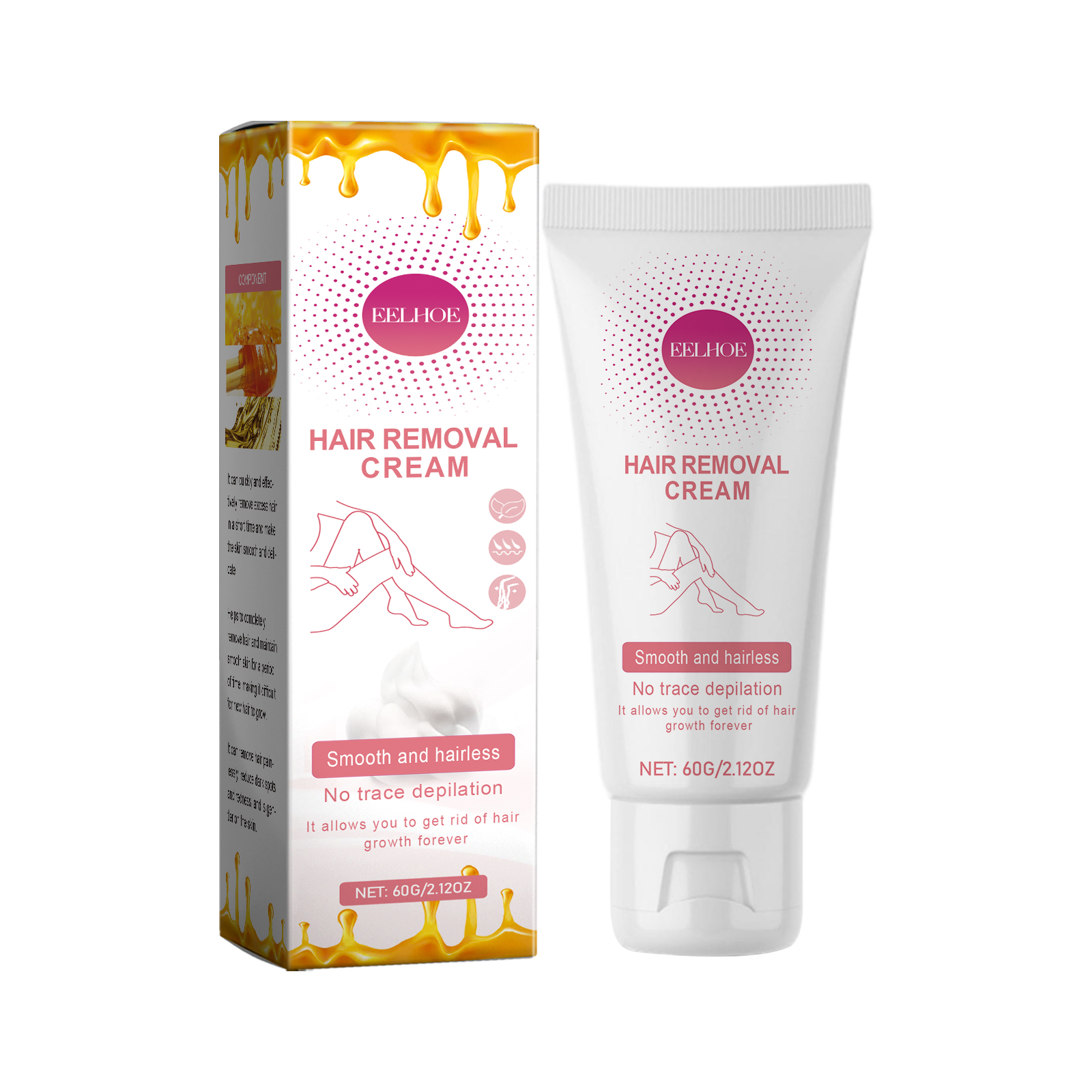 Our Hair Removal Cream contains honey, vitamin E, aloe vera extract. It can quickly and effectively remove excess hair in a short period of time, make the skin smooth and delicate, help to completely remove hair, and maintain smooth skin for a period of time, not easy to grow new hair. Its use method is very simple: evenly apply the appropriate amount of this product to the desired area, leave for 5 minutes, wipe off the residue, and finally rinse with clean water. It can remove hair without pain, reduce black spots and redness, and is more gentle on the skin. This product contains moisturizing ingredients, so that you can remove hair while moisturizing the skin and reducing dryness.