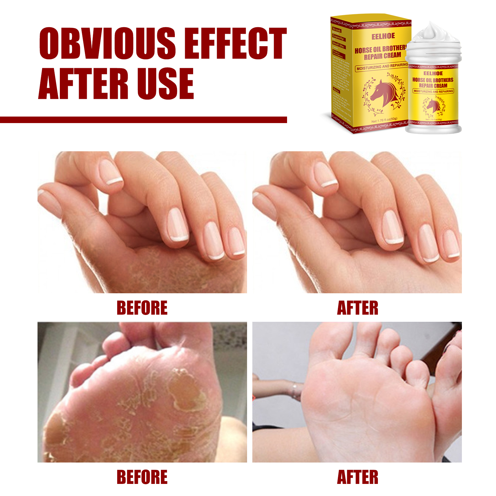 Our hand and foot repair cream contains mint leaves and glycerin. It helps to easily solve foot and hand problems for skin chapped. Its use method is very simple: hand use: 1. Clean hands, take appropriate amount of slurry. 2. Apply evenly and massage for 3 minutes. 3. Apply the cream so that it is fully absorbed into the skin. Use of feet: 1. Soak feet in warm water for half an hour before use, wash and keep dry. 2. Apply appropriate amount of the product to the discomfort area. 3. Use consistently, twice a day. (in severe cases, increase the frequency and dosage appropriately) Moisturize your feet and hands after use, improve exfoliation, smooth skin, exfoliate calluses.