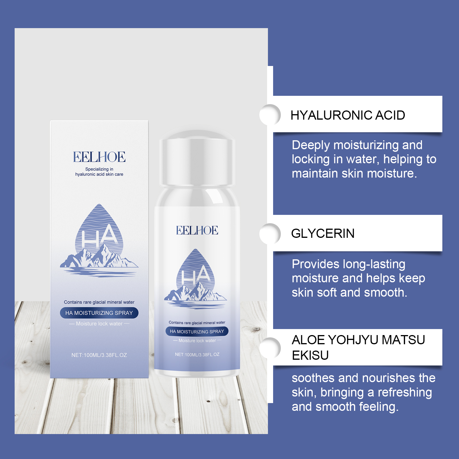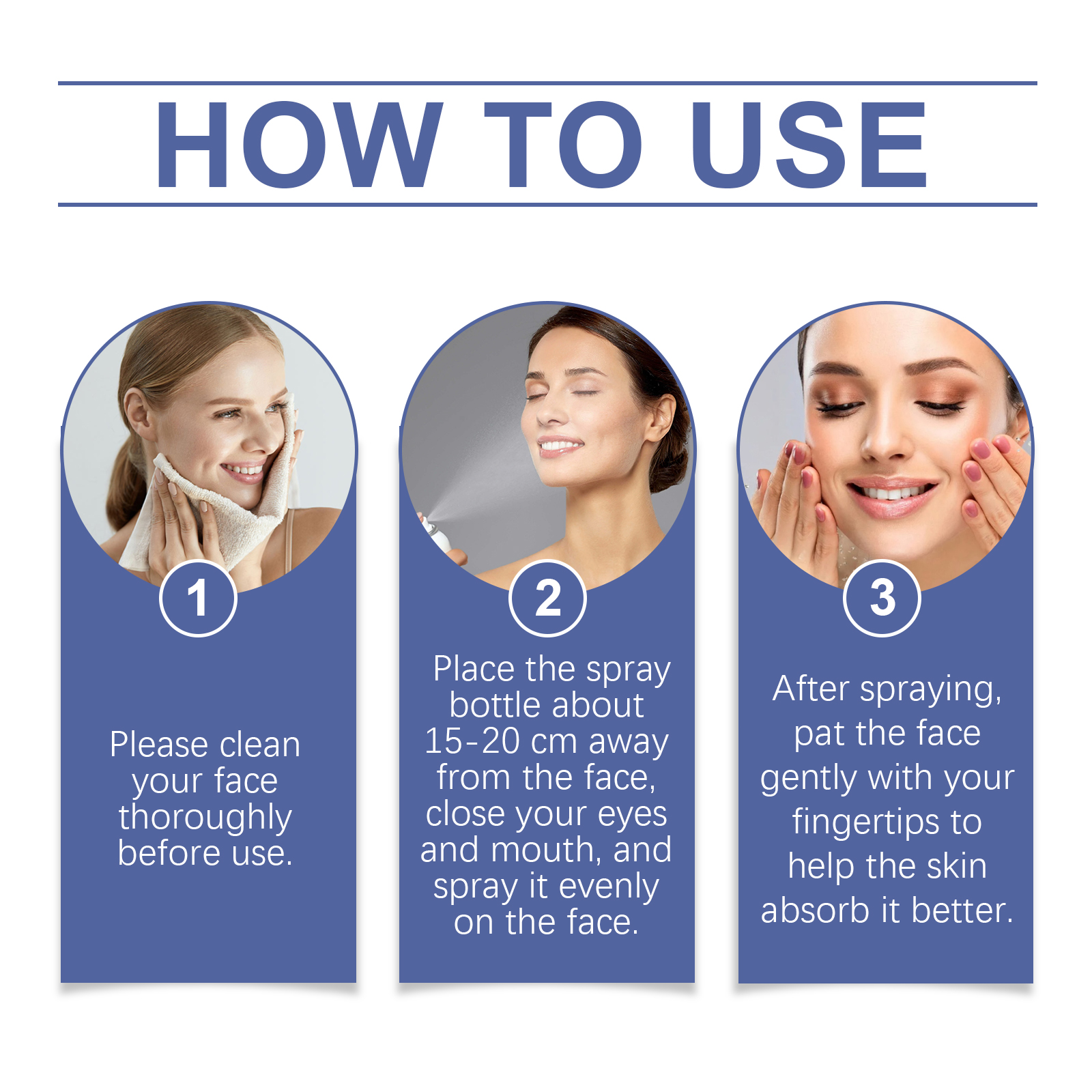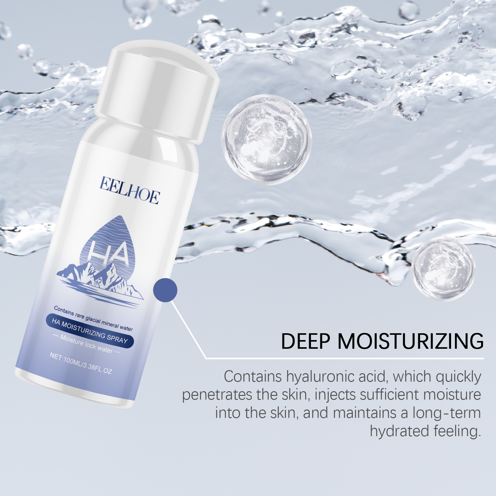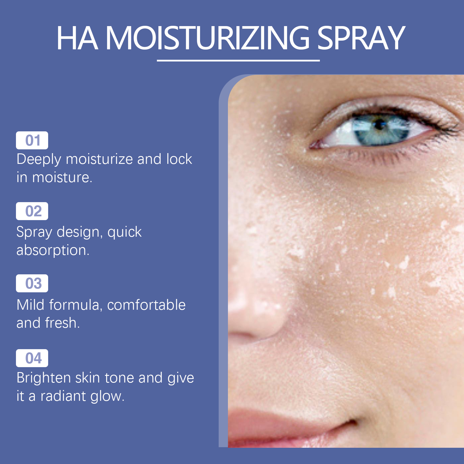 Our hyaluronic acid hydrating spray contains aloe vera extract and seaweed leaf extract. It can penetrate efficiently, quickly inject water into the skin, and keep the skin moisturized for a long time. The way to use it is simple: clean your face thoroughly before use. Place the spray bottle about 15-20 cm from your face, close your eyes and mouth, and spray evenly on your face. After spraying, gently pat your face with your fingertips to help your skin absorb better. And the spray texture is light, quickly absorbed after spray, not sticky and greasy.