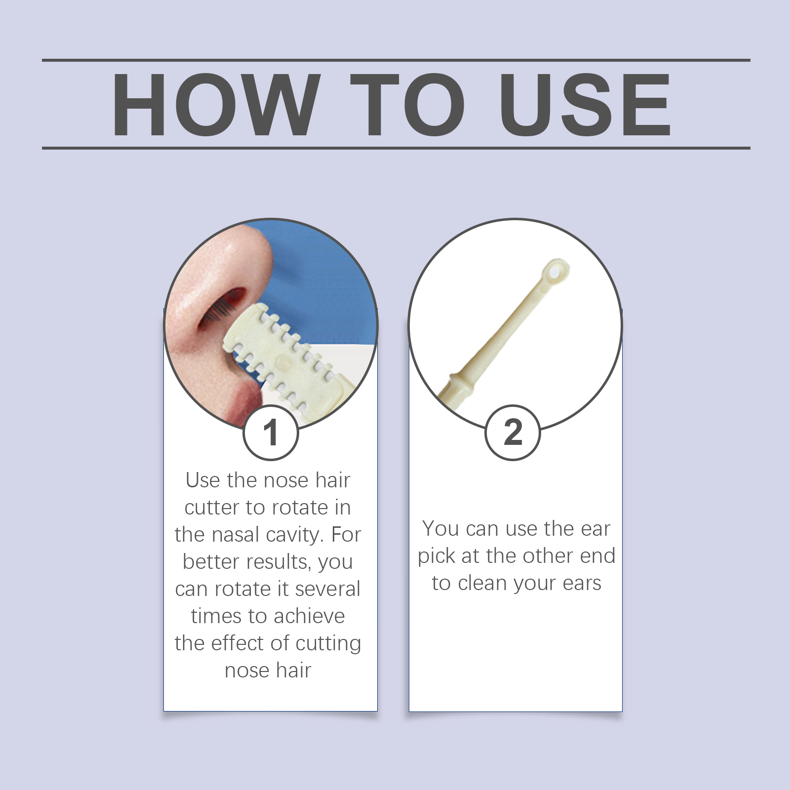 Our versatile nose hair remover contains trims that are precise and suitable for different populations. Safe and durable materials ensure longer product life. The way to use it is very simple: rotate the nose hair cutter in the nasal cavity, for better results, you can rotate several times to achieve the effect of cutting nose hair, you can use the ear scraper on the other end to clean your ear. And excess nose hair can be trimmed easily and precisely for a comfortable experience.