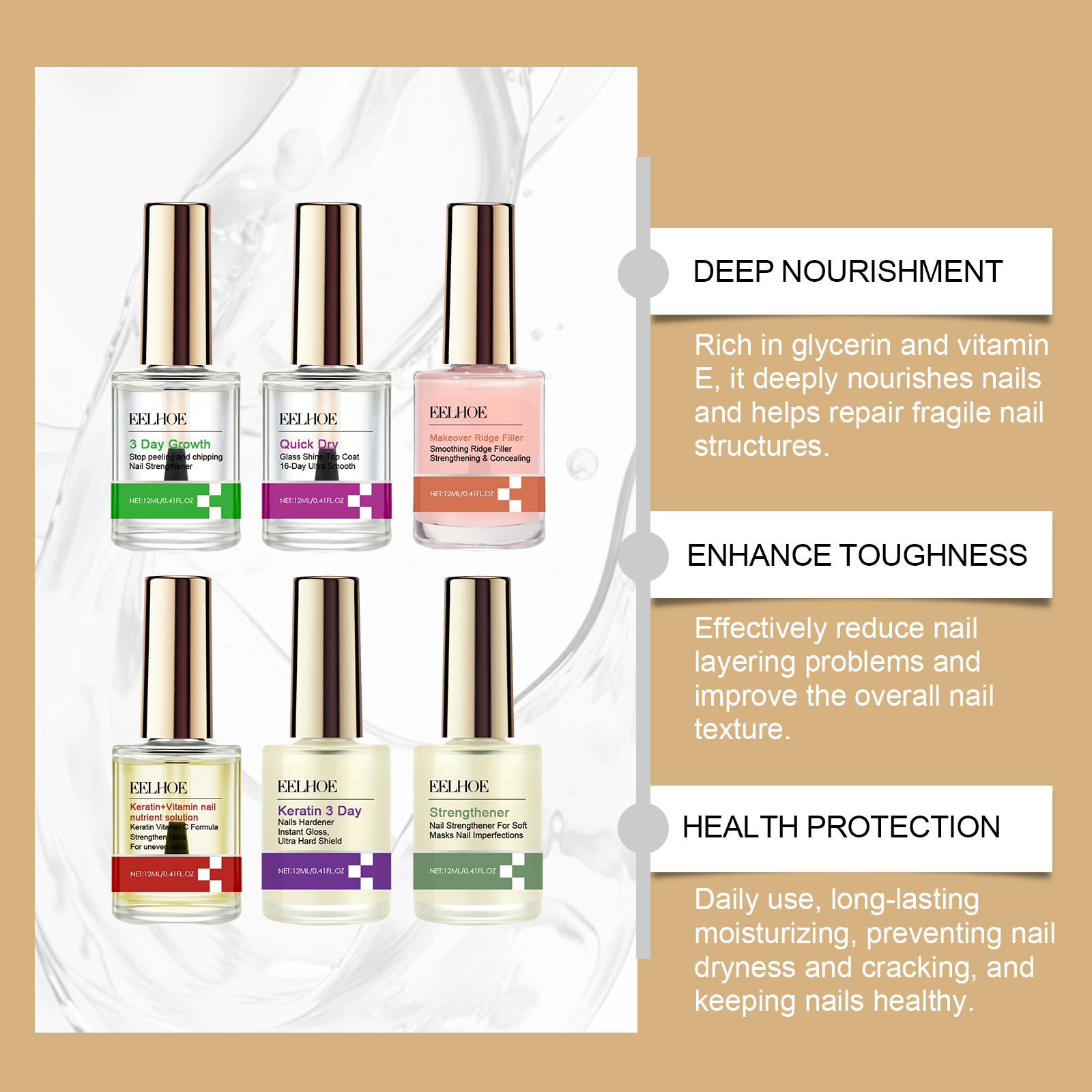 Our strong nail care liquid is made of glycerin, keratin and tocopherol (vitamin E). Designed specifically to protect nails from environmental damage and delay aging. The usage method is extremely convenient: 1. Clean and dry the nails and the surrounding skin; 2. Take an appropriate amount of nail polish and apply it evenly on your nails. 3. Gently massage until fully absorbed. And it can form an invisible protective layer, effectively resisting daily friction and erosion, and reducing scratches on the surface of the nails.