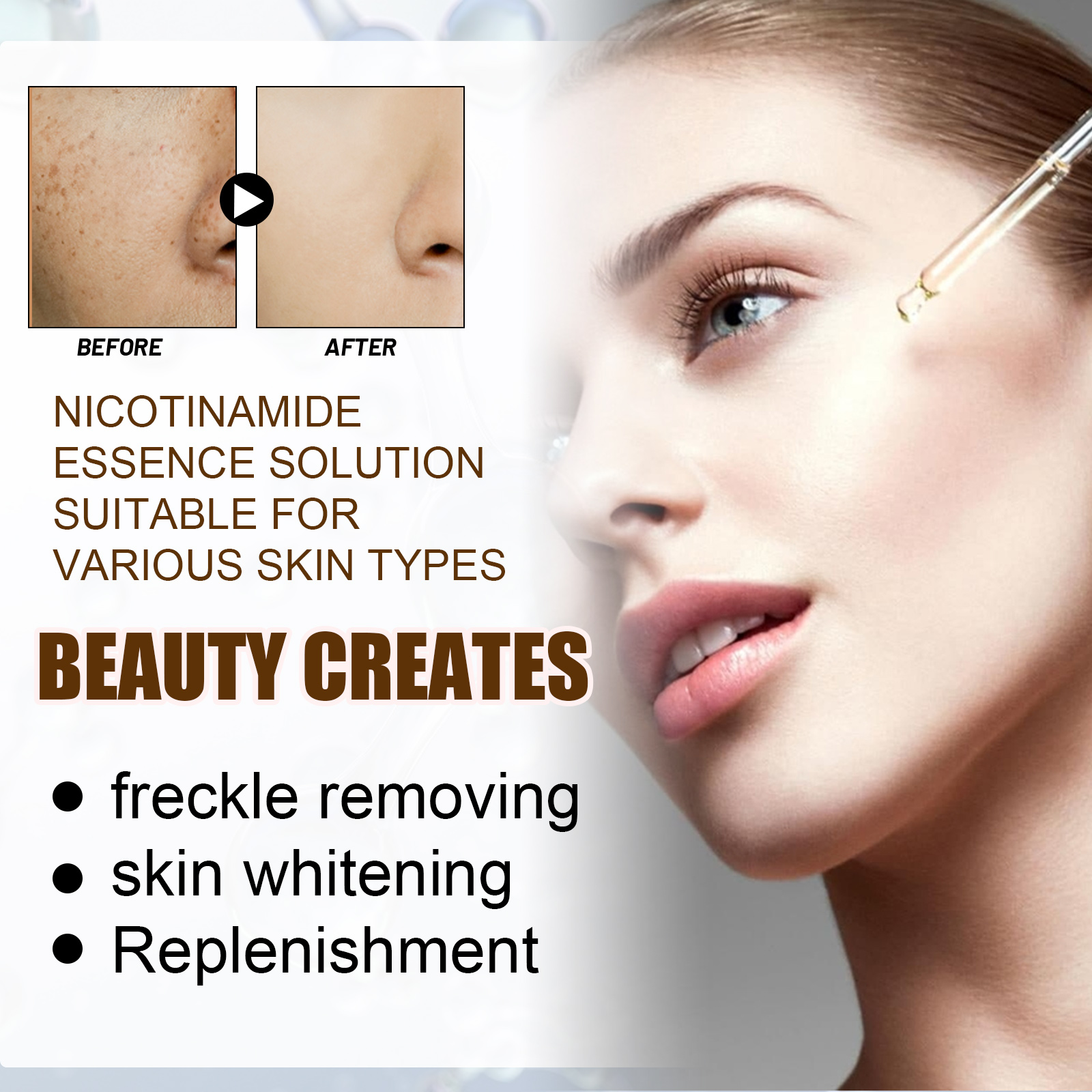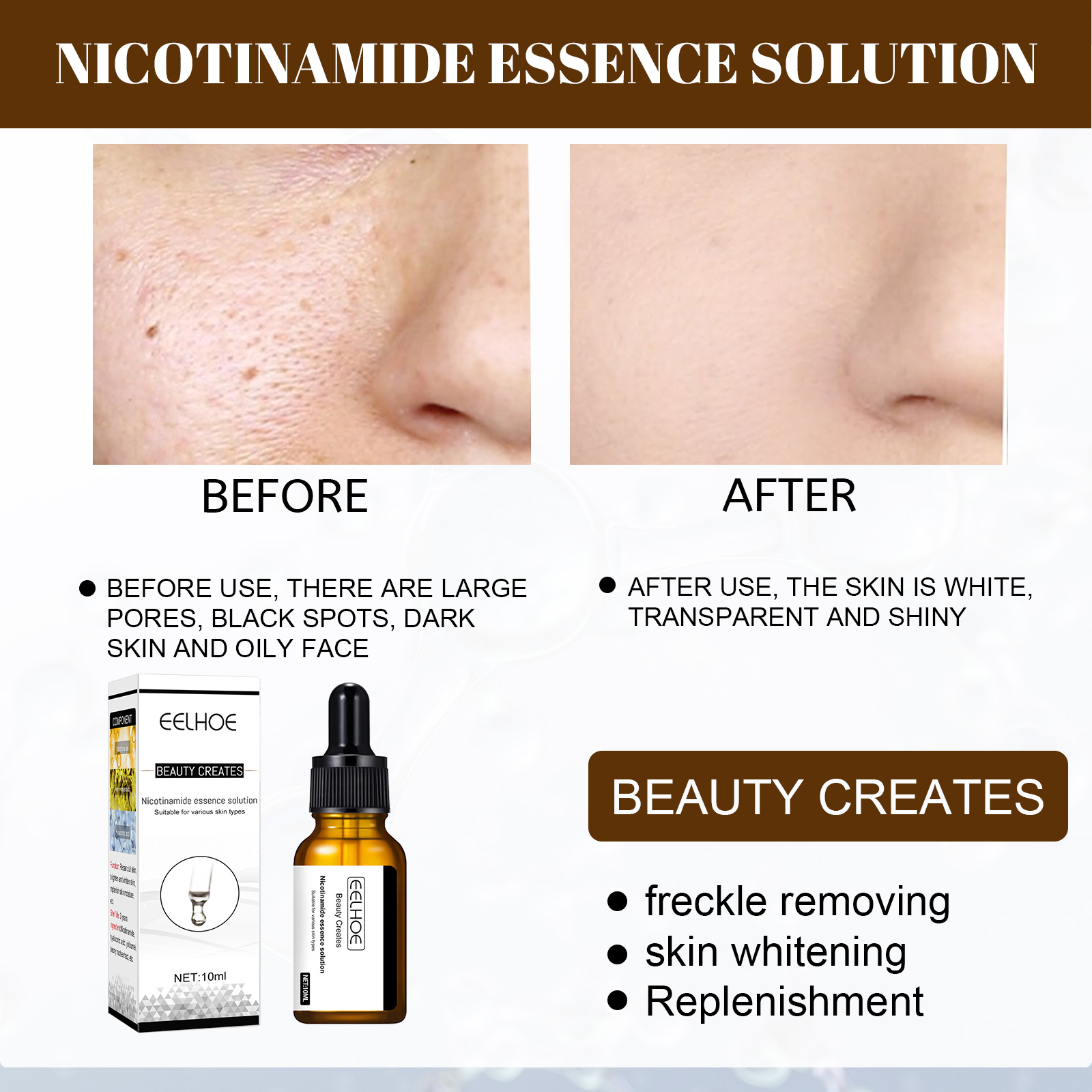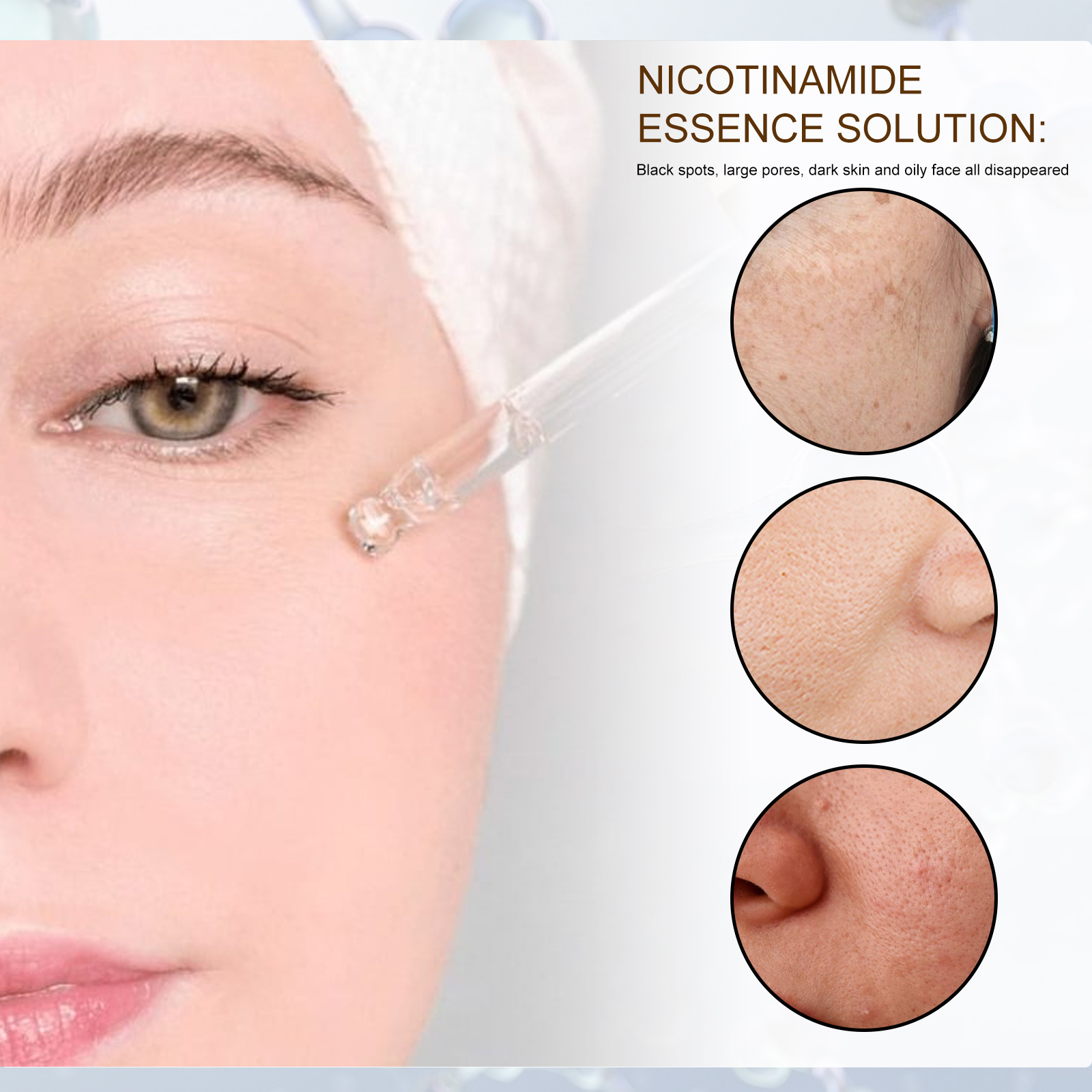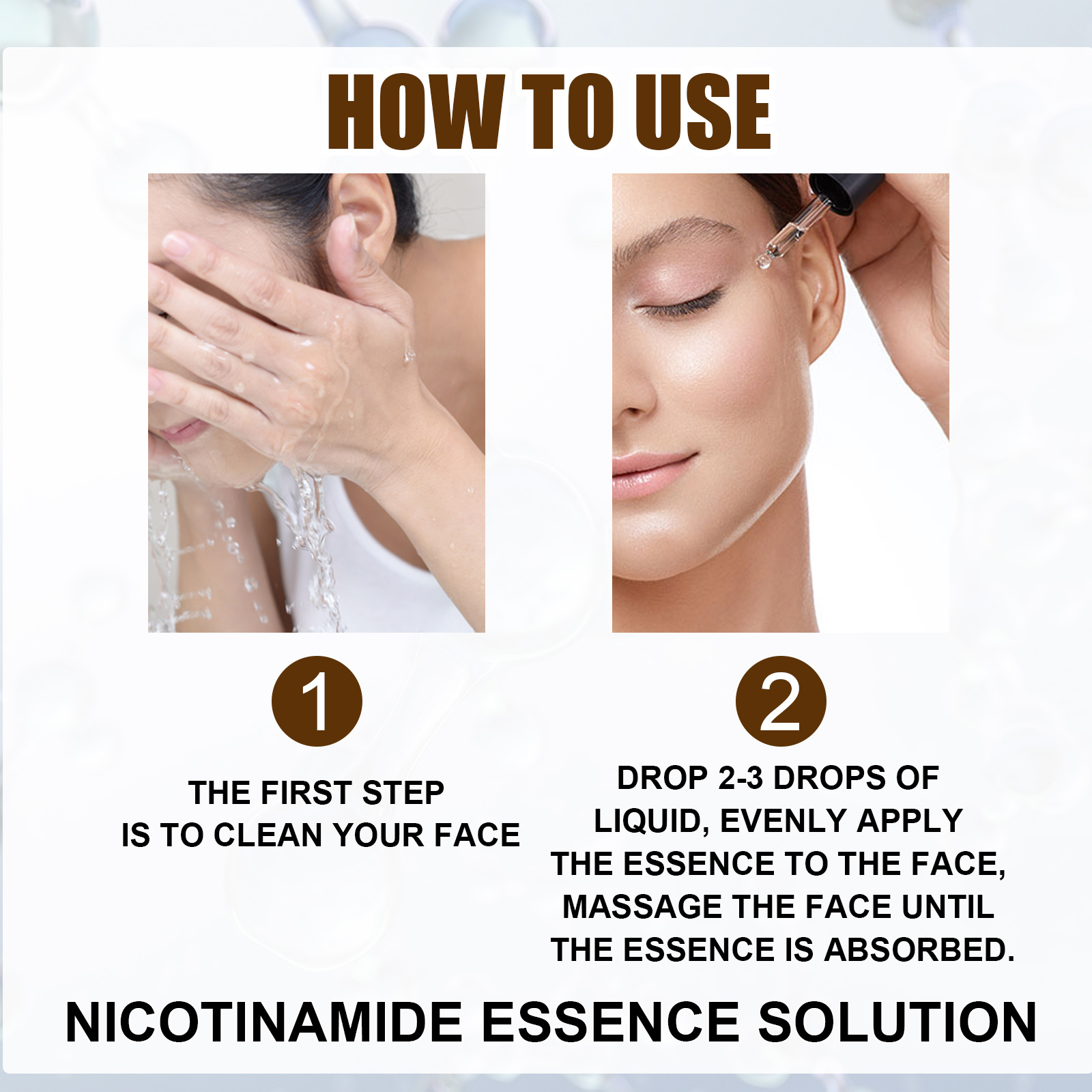 Our Shrink Pore And Brighten Skin Essence contains nicotine, paeonia root extract, hyaluronic acid. It can tighten the contour, make the facial contour clear, and improve the elasticity and tightness of the skin. The method of use is very simple: After the normal surface cleaning procedure, evenly apply appropriate lotion on the face, gently make a small circle with your finger abdomen. Warm tip: It is recommended to use it twice a day (morning and evening), and adhere to continuous use. Freckle removing, skin whitening, make skin transparent and shiny.