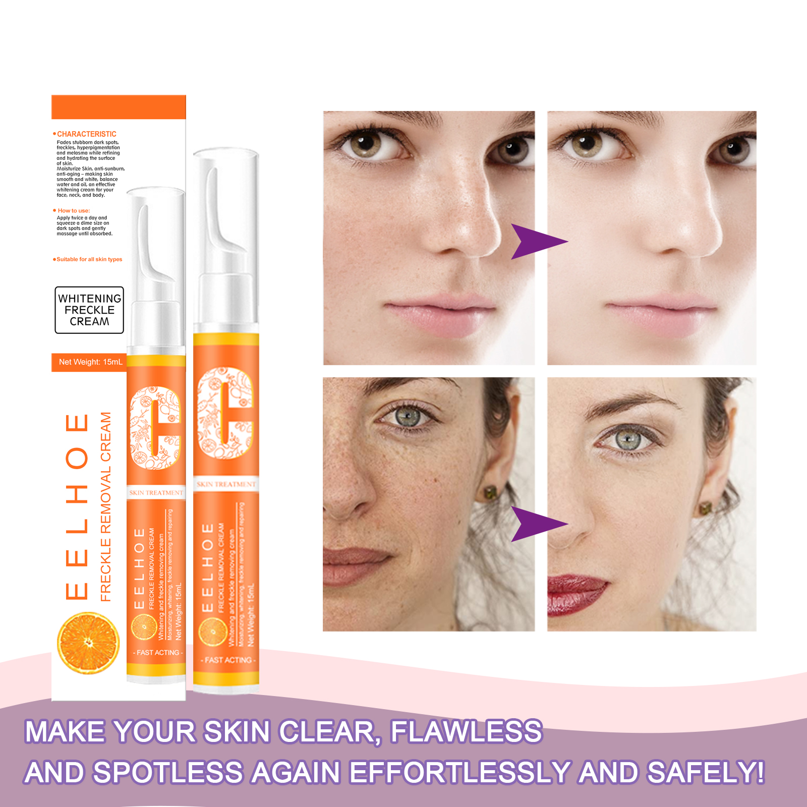 Our beauty pens contain vitamin C, niacinamide and arbutin. It helps to improve dullness, remove skin impurities, lighten skin tone, uniform and transparent skin tone, moisturize and nourish smooth and hydrated skin. Its use method is very simple: gently press, squeeze out the right amount of liquid, apply on the melanin, point the pen at the melanin area, evenly apply with your fingers, massage in circles for 10 seconds and then pat until absorbed. After use, the skin is flawless and spotless, effortless and safe!