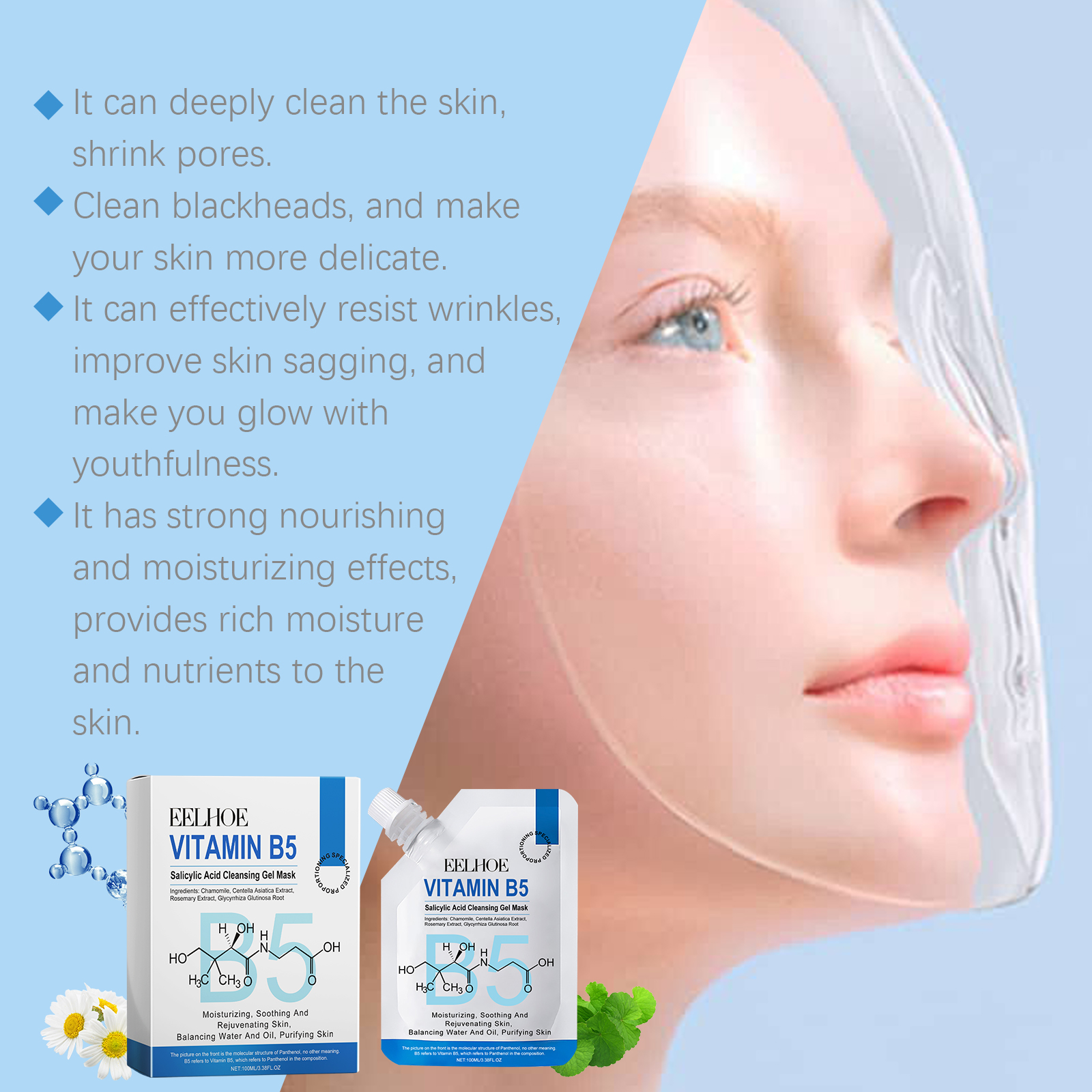 Our Vitamin B5 salicylic acid gel mask contains panthenol (vitamin B5), salicylic acid and chamomile extract. It can effectively resist oxidative stress, reduce free radical damage, and delay skin aging. Its use method is very simple: 1. Apply appropriate amount of this product evenly on the face skin; 2. Let stand for 15 minutes; 3. Massage for a while and rinse with water. Continuous use after use can reduce pigmentation, fade acne marks, has an antibacterial effect, and reduces the risk of skin inflammation.