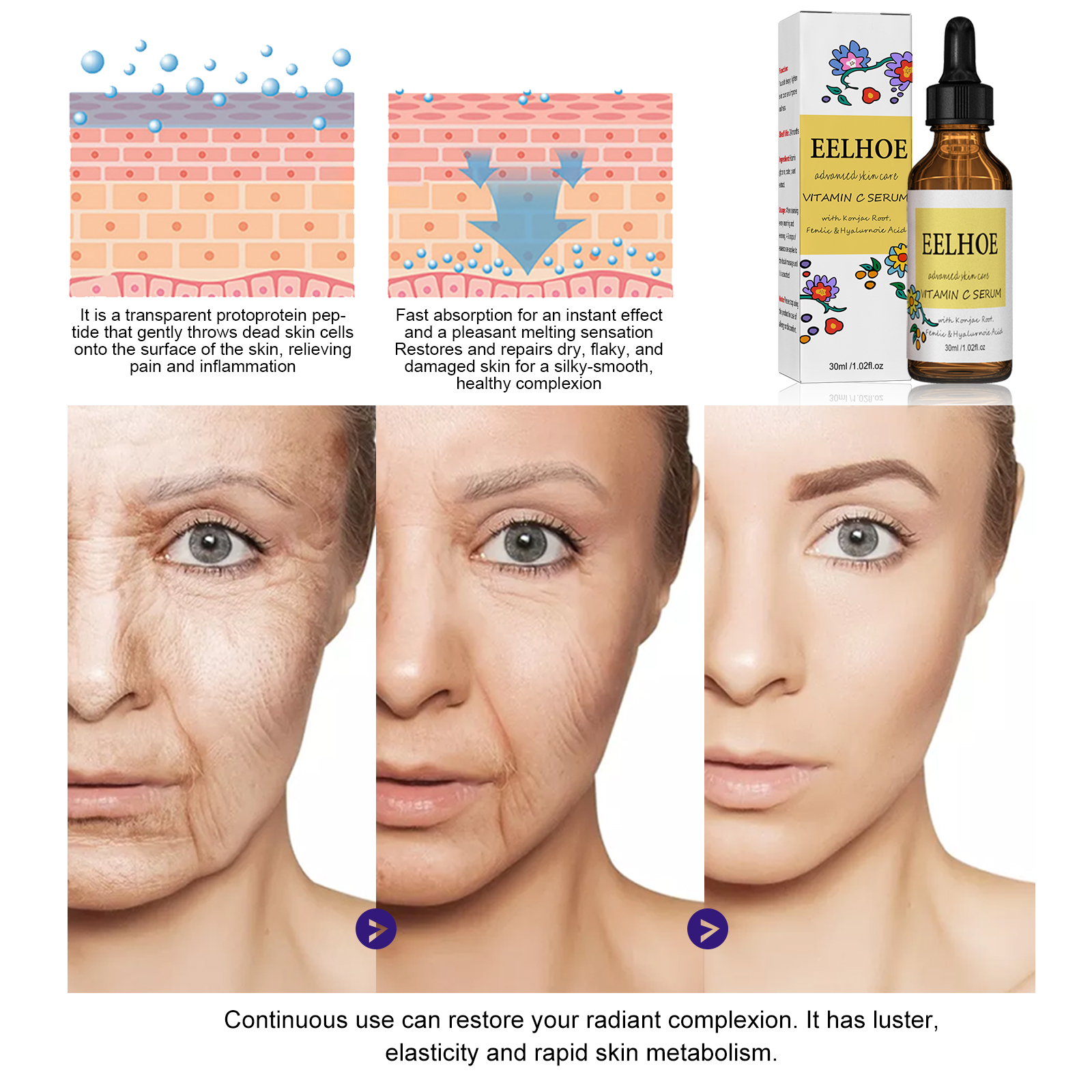 Our Vitamin C serum contains vitamin C, vitamin E, and hyaluronic acid. It helps to restore your radiant complexion. Its use method is very simple: every morning and evening, take appropriate amount of this product on the face, gently massage until absorbed. After use, it is as clear as water, fresh and not greasy, refreshing and moisturizing the skin, and meticulous care makes the skin appear tender and smooth.