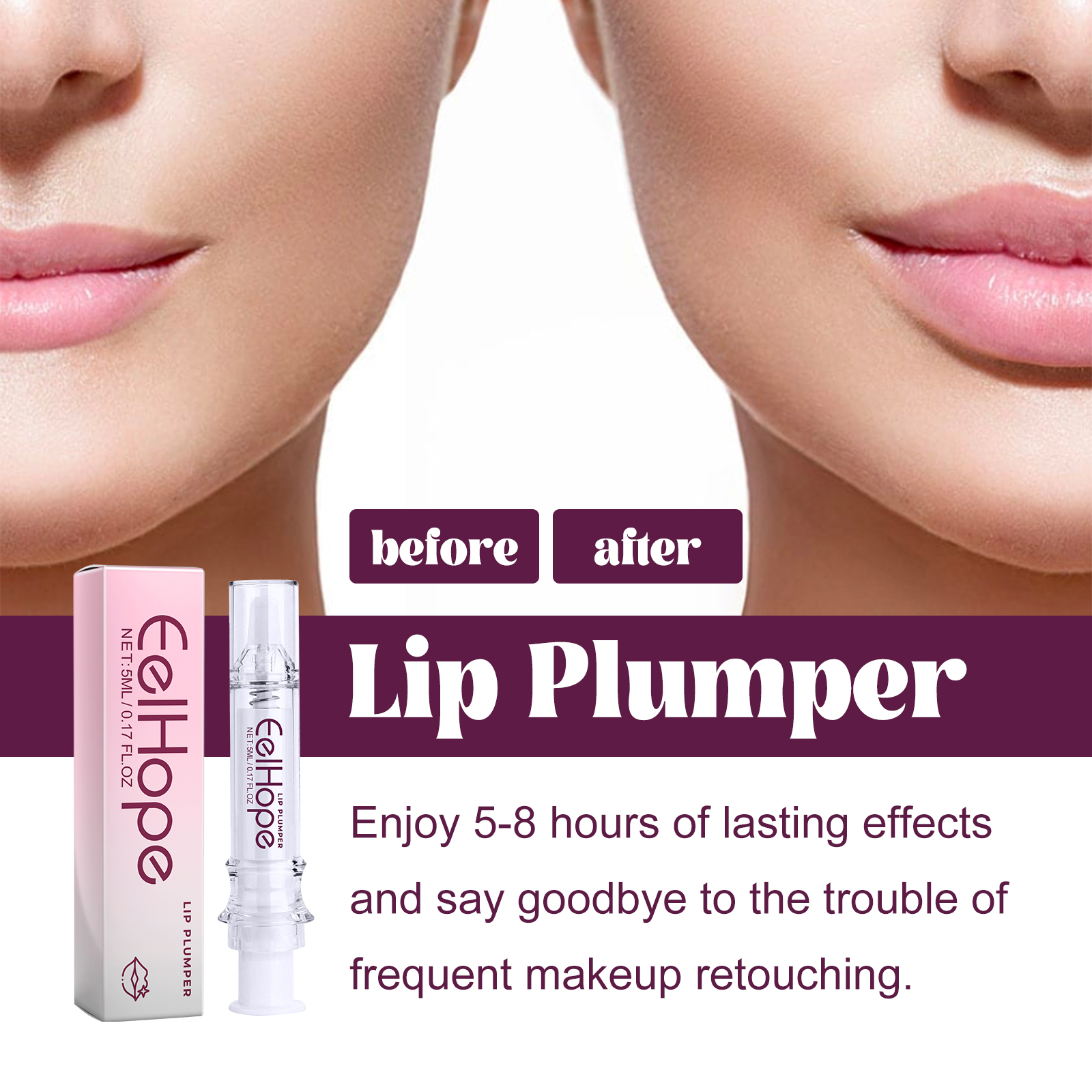 Our Lip Plumper contain Glycerin, Zingiber Officinale (Ginger) Root Extract, Mentha Arvensis Extract. It can effectively remove the dullness of the lips, make the lips smoother, restore the red lips, and moisturize the lips. The way to use it is very simple: clean and dry your lips, apply an appropriate amount of this product evenly to your lips and let dry. Can make your lips instantly plump, show your attractive charm.