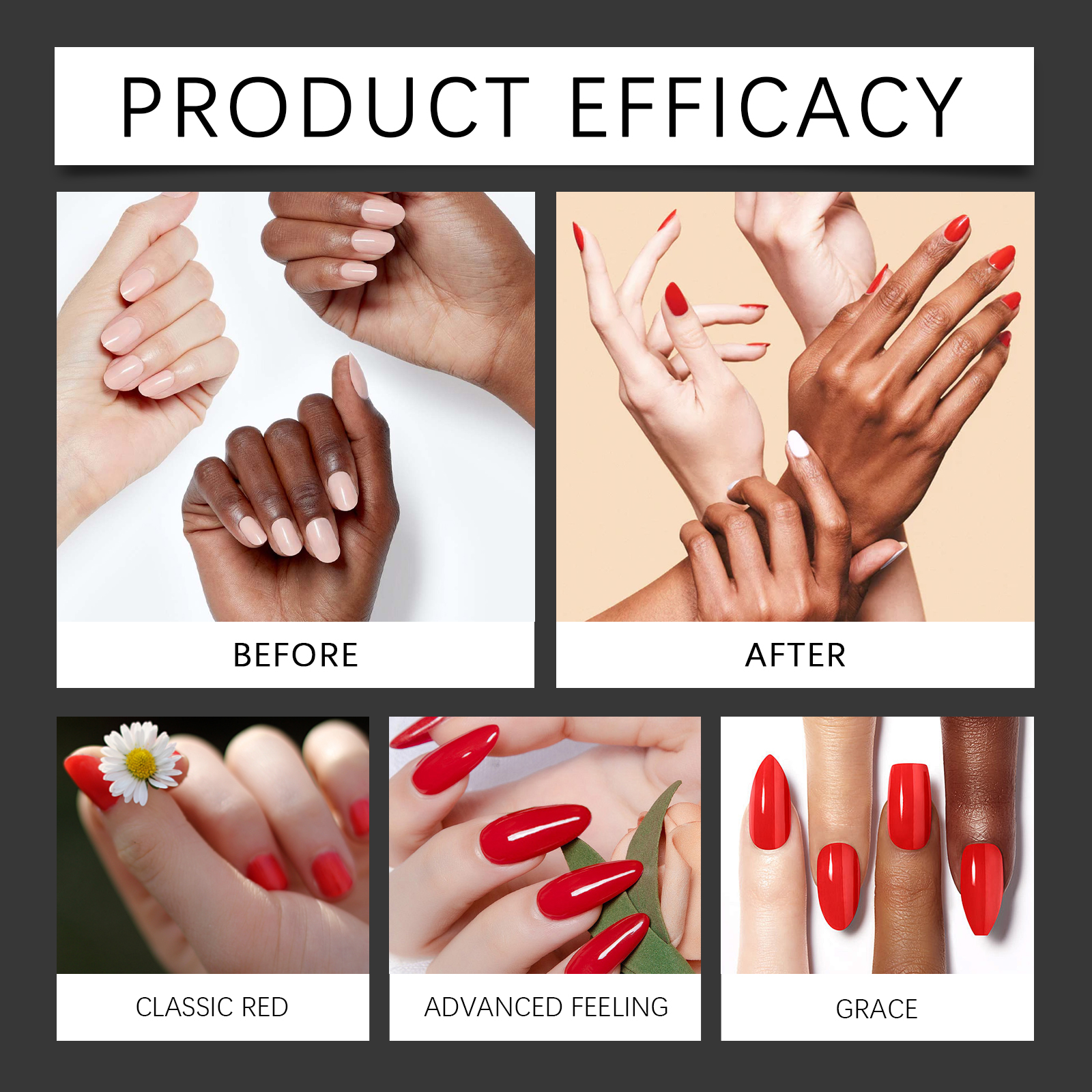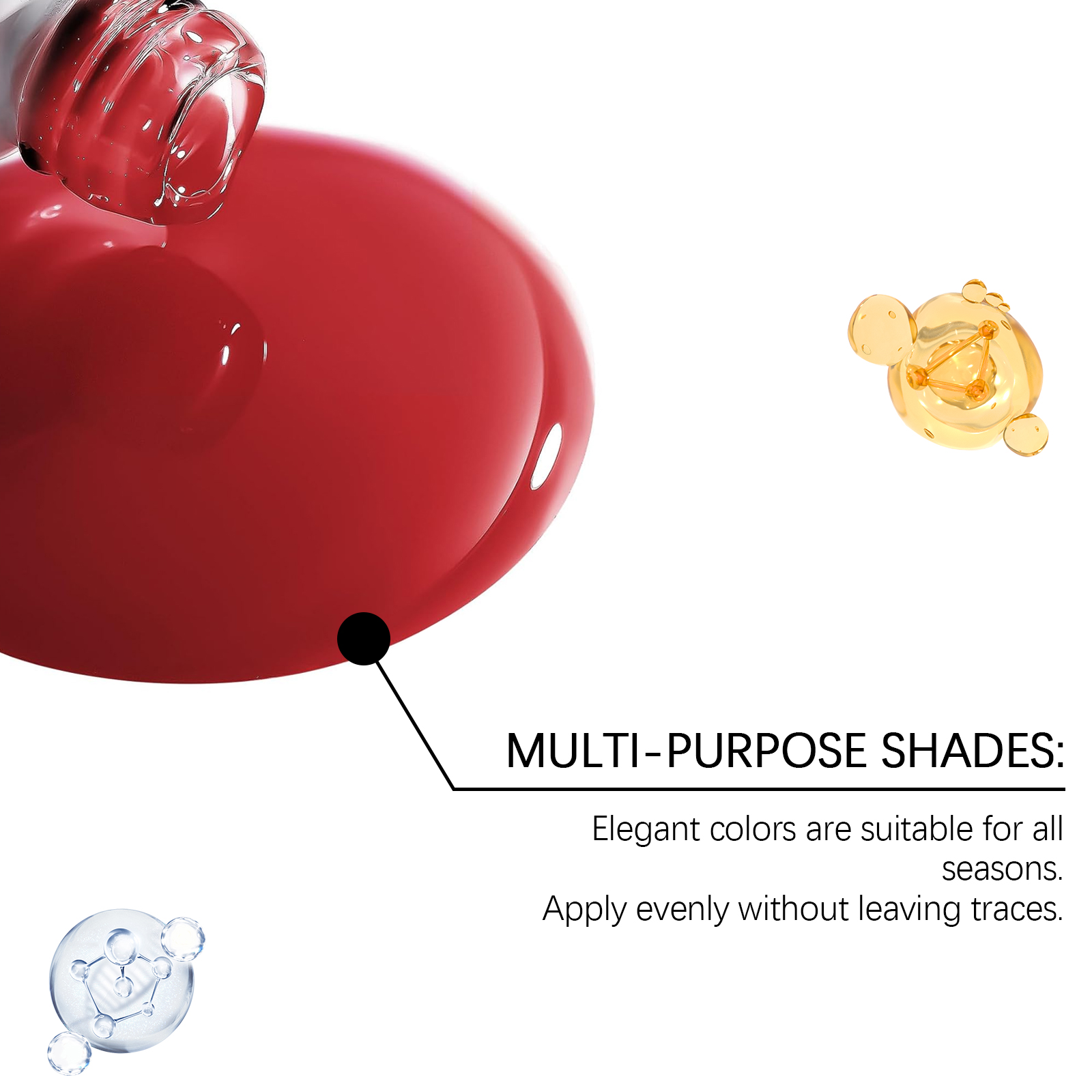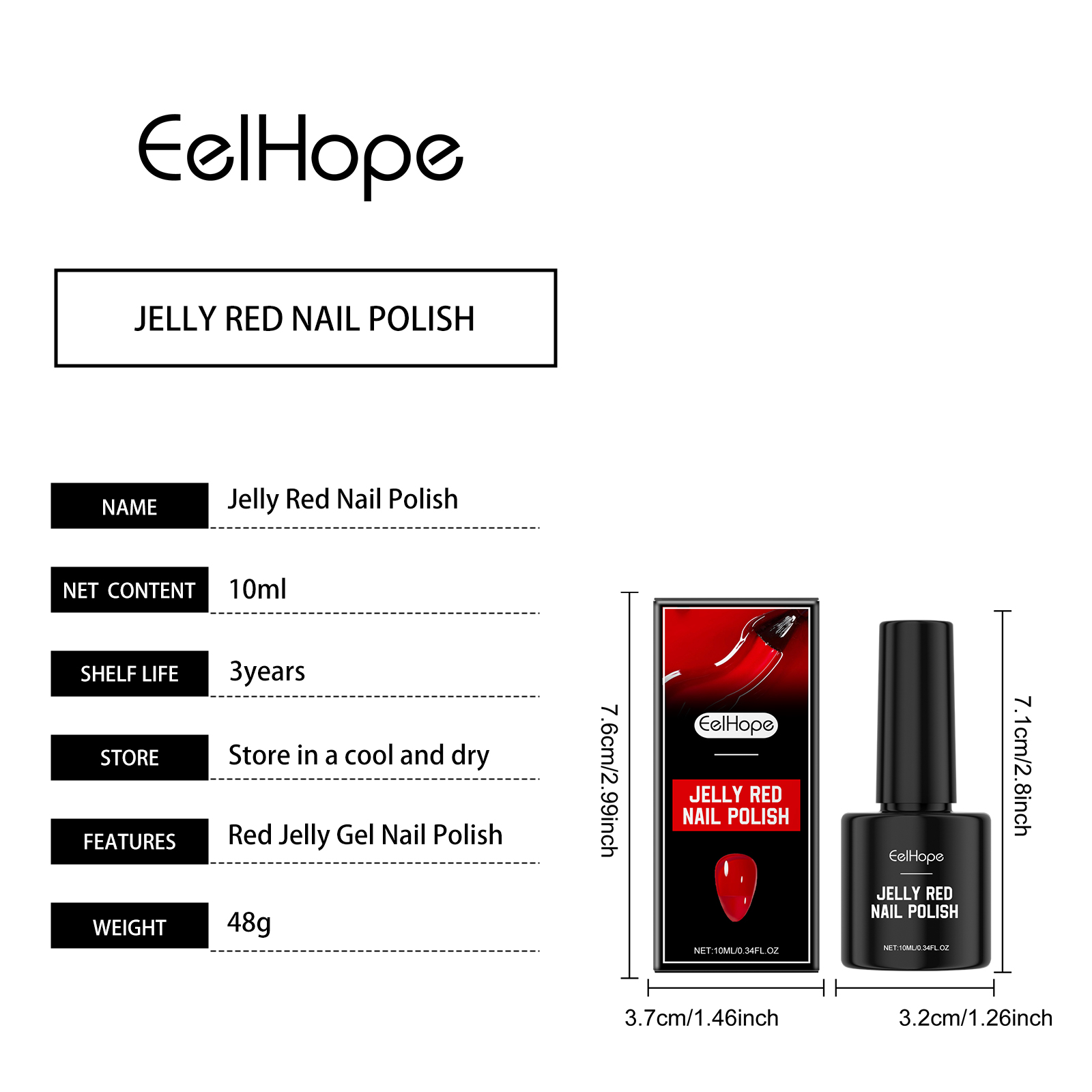 Our red jelly nail polish contains vitamin C (ascorbic acid), vitamin E (tocopherol). It dries quickly and reduces waiting time. Its application is simple: clean the surface of the nail and keep it dry. Apply the product evenly to the nail surface. Let it dry for 15 minutes. And choose high-end shades to make your nails shine.