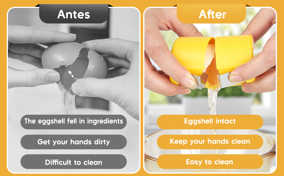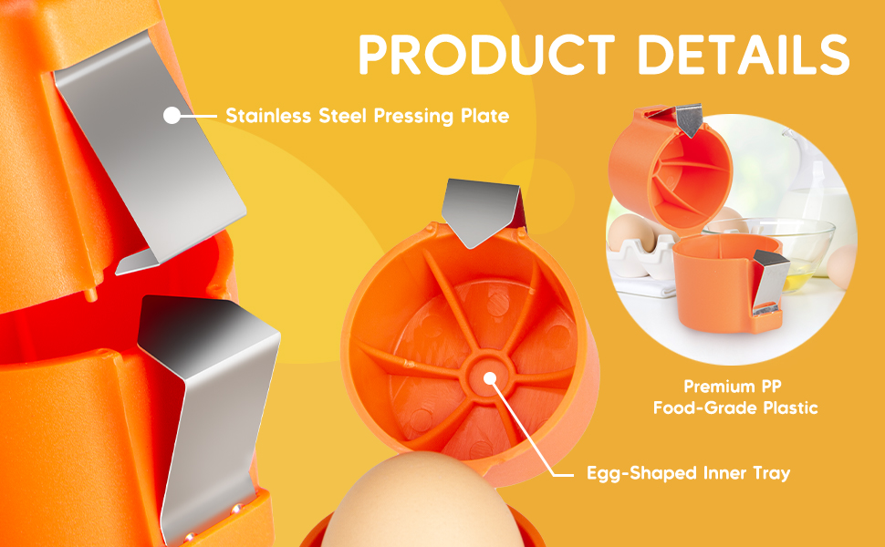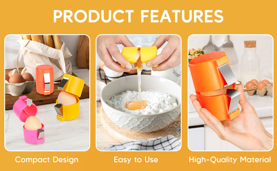 Safety Features: Enjoy a clean and tidy shell-opening experience with our egg separator, featuring a non-slip base and a well-designed egg holder for secure handling of all sizes. Suitable for both adults and kids, it pairs perfectly with slicers or separators for added convenience。