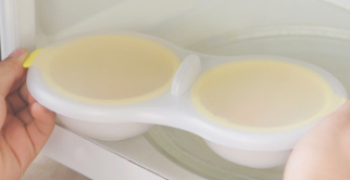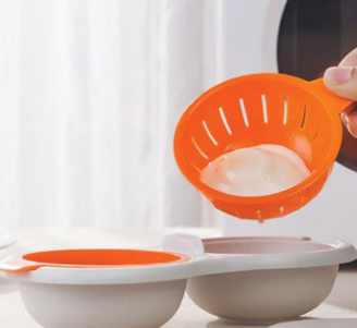 Made of food-grade materials. Safe and easy to use. Simply fill with water, crack your eggs, cover and pop in the microwave for two-three minutes. When cooked, lift the colander to drain the egg and serve.