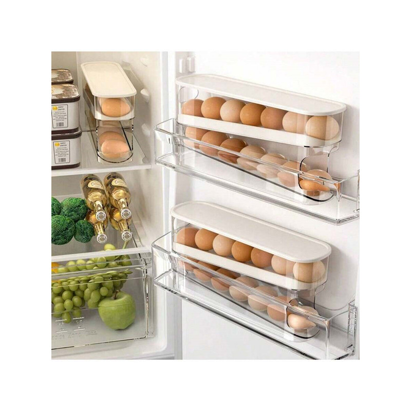 Eggs Automatic Rolling Refrigerator Organiser 2 Tier Transparent Rolling Storage Box Refrigerator Side Door, Durable Plastic, Tray Container