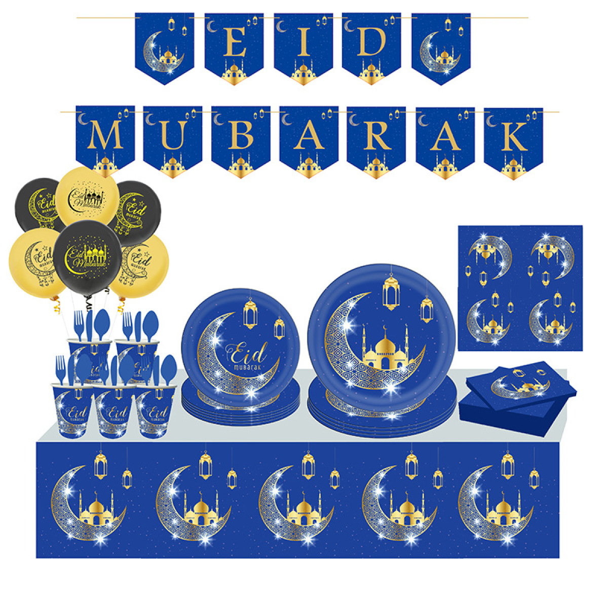 Size:7 inch 16pcs, 9 inch 16pcs, paper cup 16pcs, paper towel 20pcs, tablecloth 132*220cm, pull flag, knife 16pcs, fork 16pcs, spoon 16pcs, balloon 16pcs, set for 16 persons