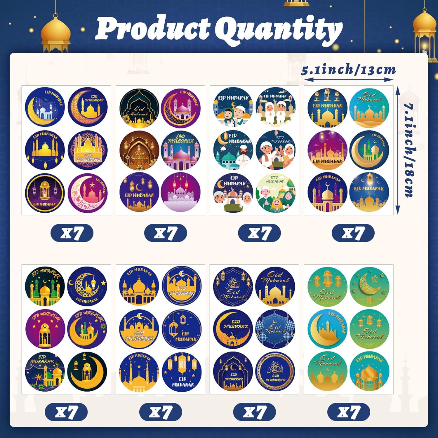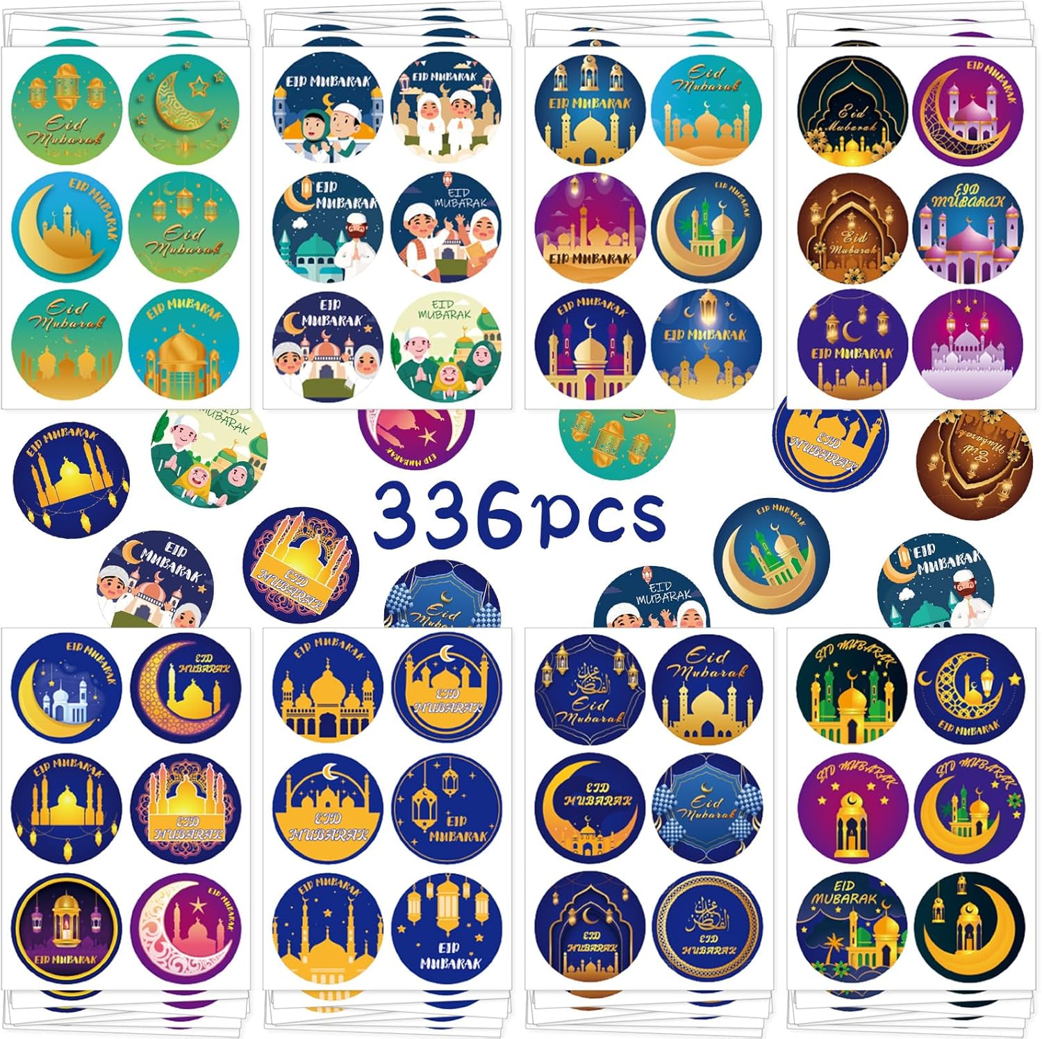 Package Contents: You will receive 336pcs Eid Mubarak stickers for kids, 6pcs for each sheet,a total of 56 pieces. There are 48 different styles for you to choose from, with a diameter of 2 inches.Sufficient quantities and various styles can meet your various needs, adding fun and colorful to your Eid decoration