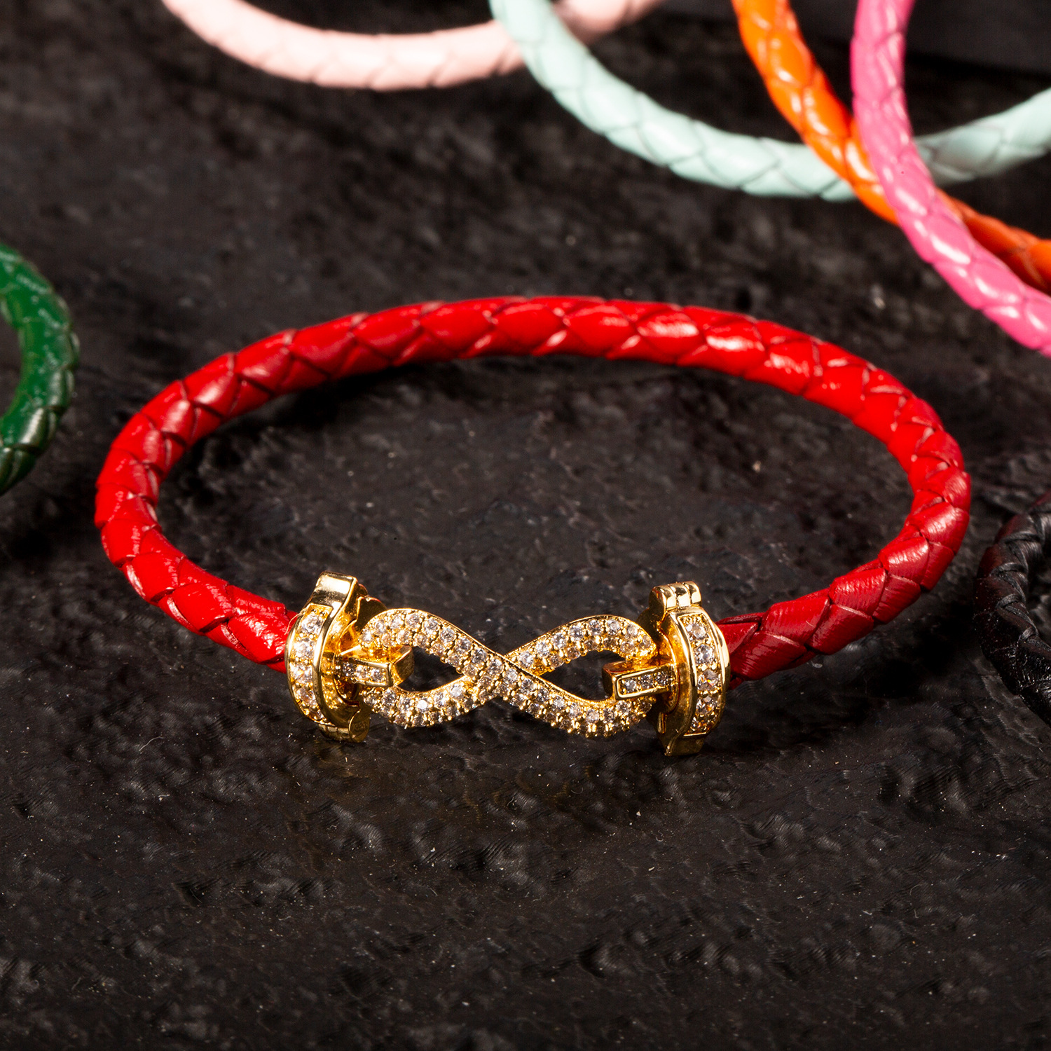 Eight-character Clasp Braided Leather Cord Bracelet