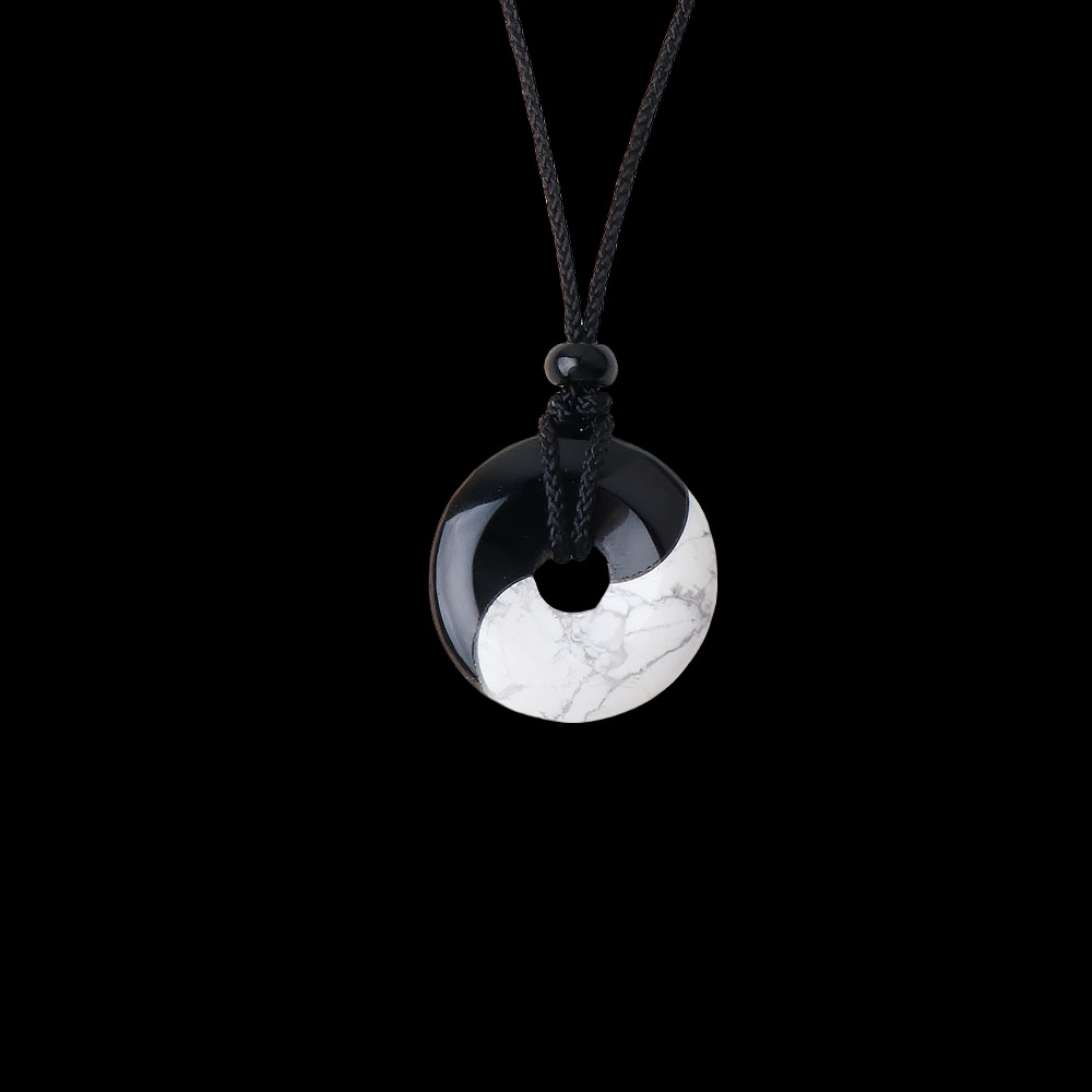 Eight-diagram-shaped Black Silk Turquoise Stitching Peace Buckle Necklace