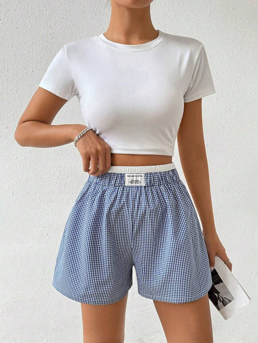 Elastic High-waist Buttoned Loose Casual Comfortable Basic Shorts