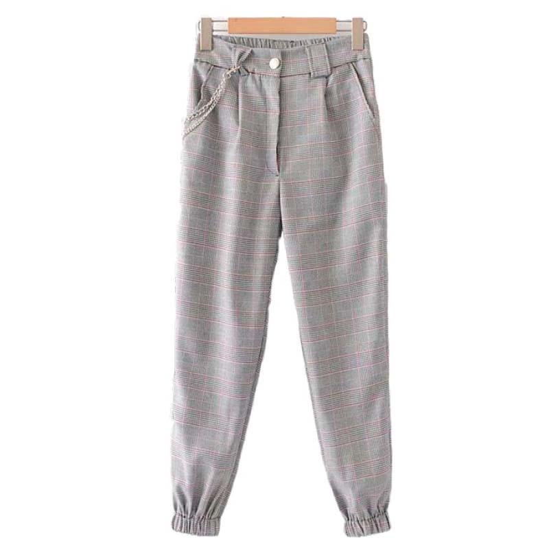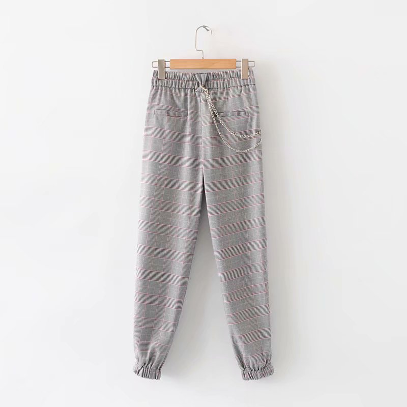 Elastic waist check beam pants