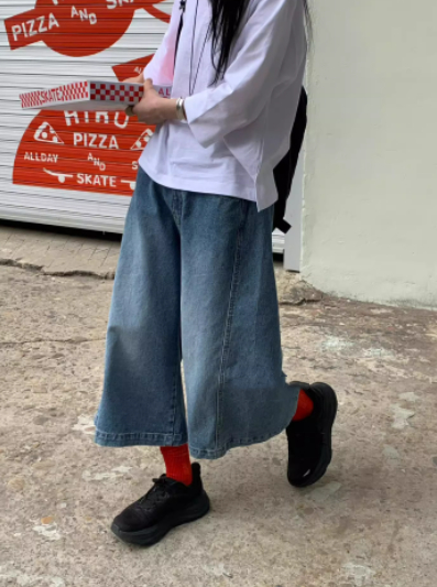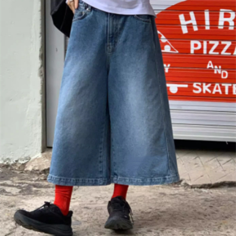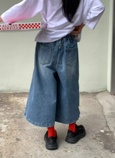 Elastic-waist Distressed Wide-leg Capri Jeans For Women