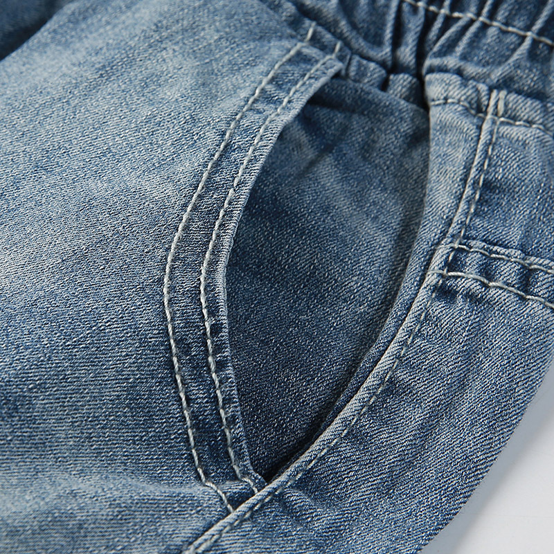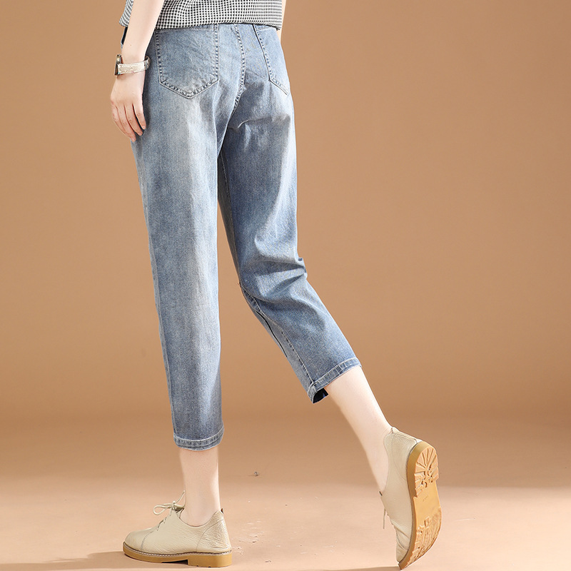 Elastic Waist Embroidery Cropped Jeans Women Summer Thin Section