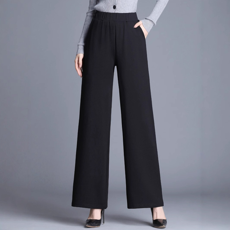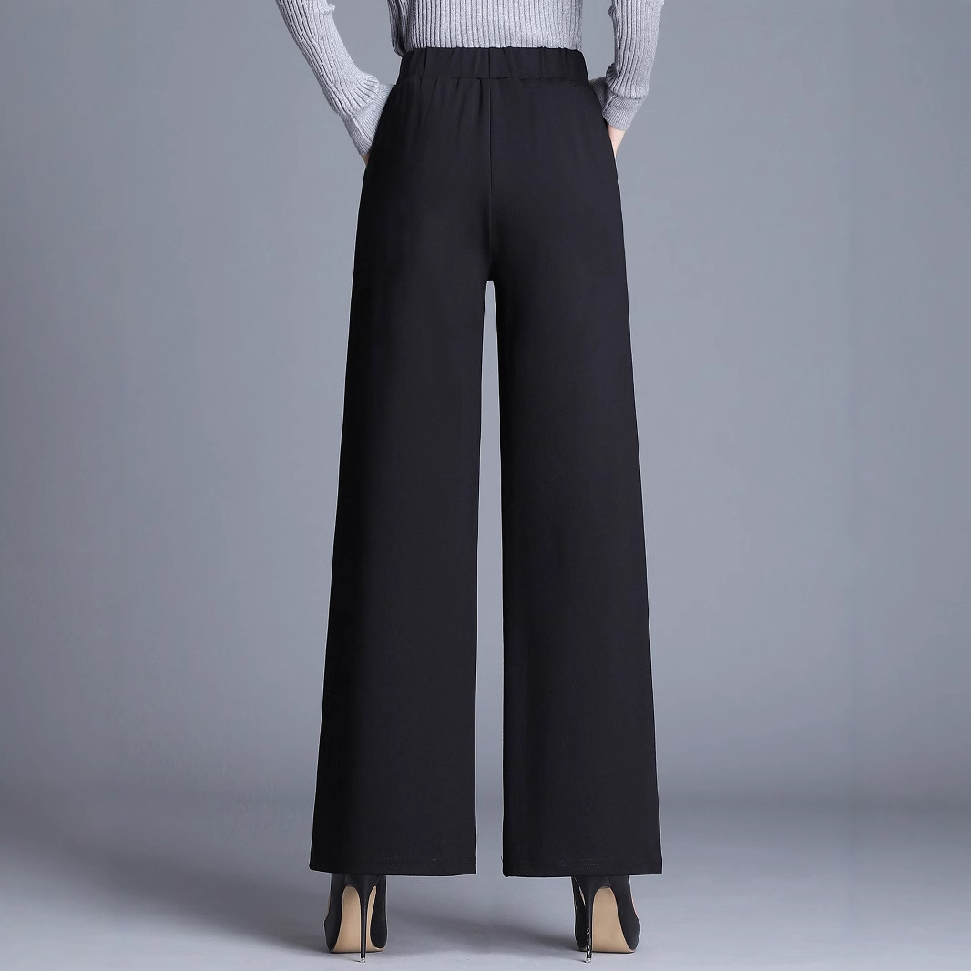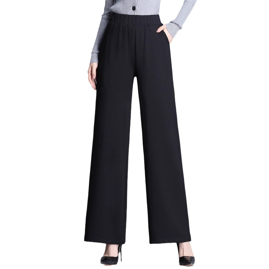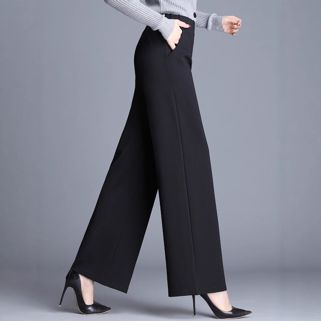 Product information: Color: Black; Main fabric content: Polyester Sizes: S, M, L, XL Pants style: Straight-leg Design: Wide-leg pants