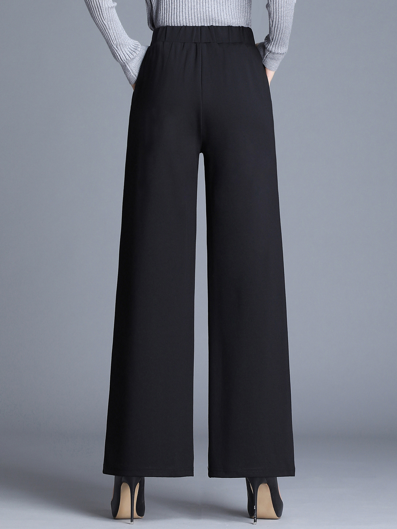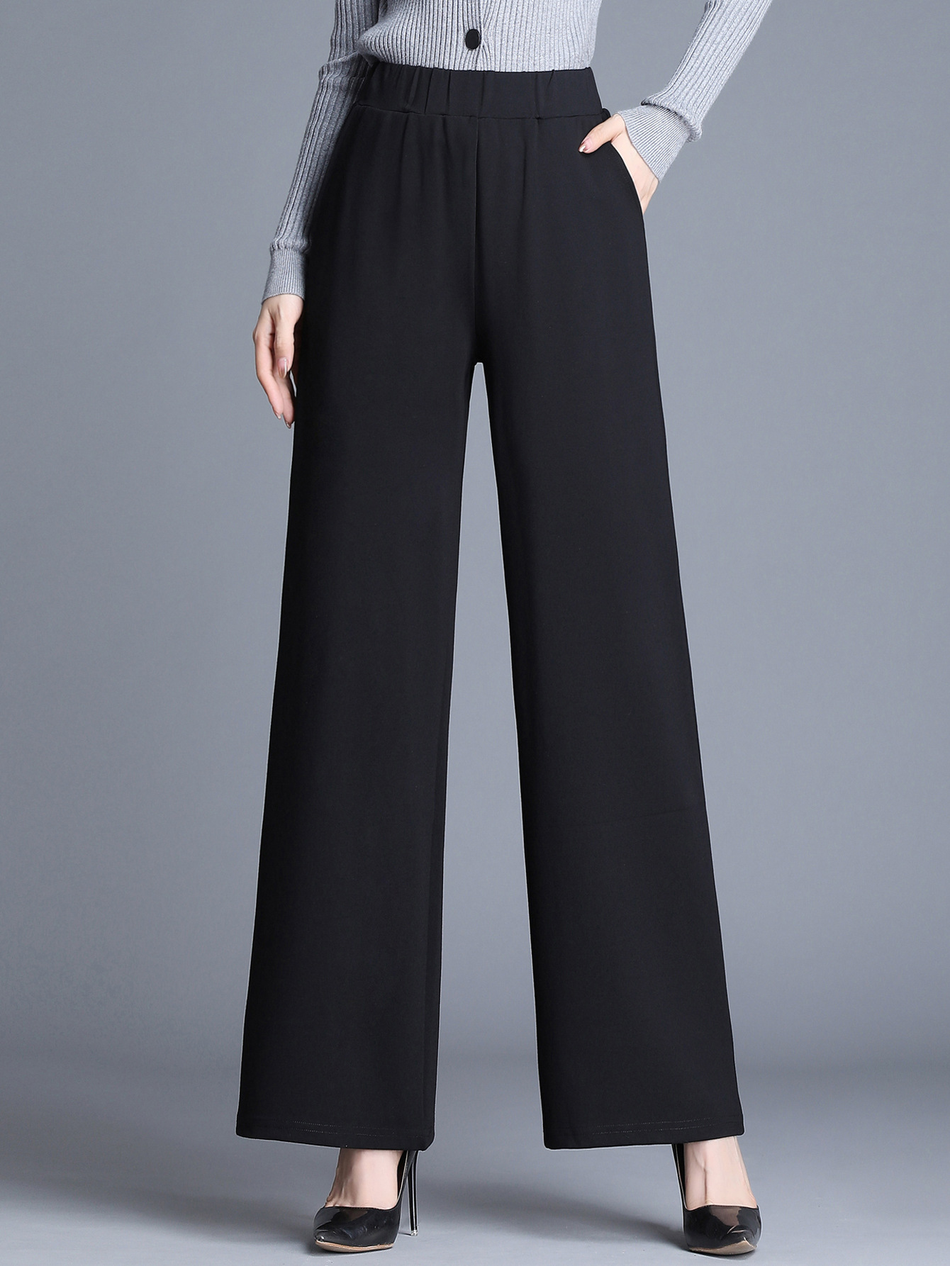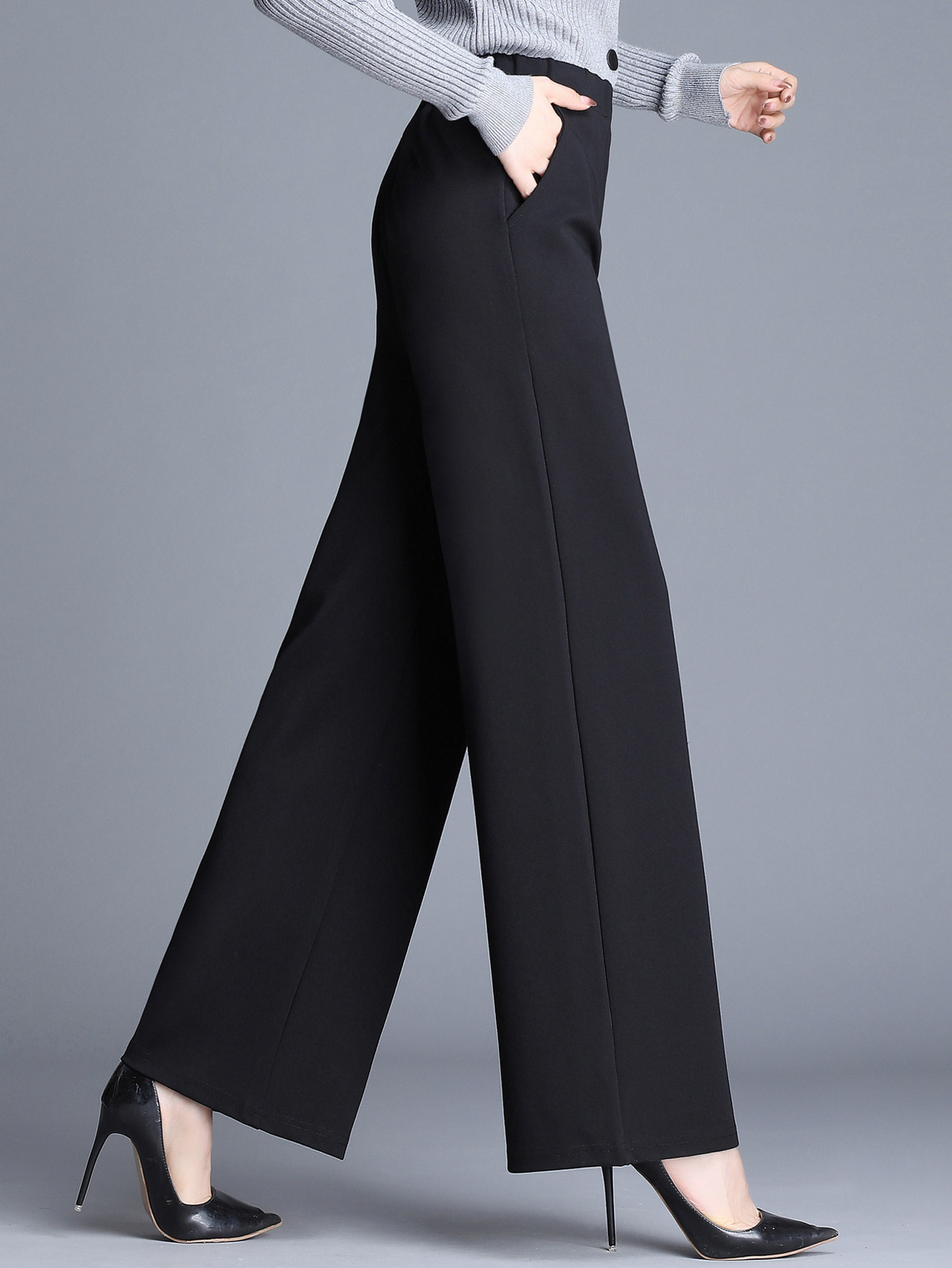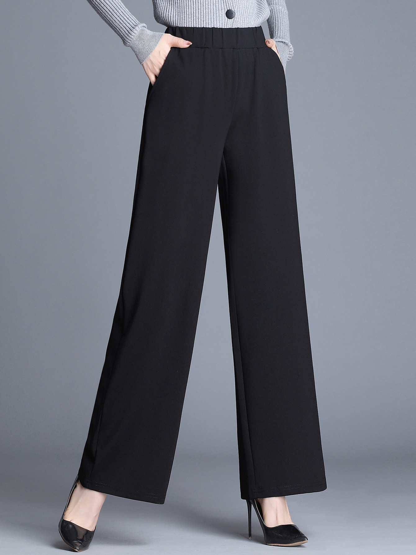 Product information: Color: Black; Main fabric content: Polyester Sizes: S, M, L, XL Pants style: Straight-leg Design: Wide-leg pants