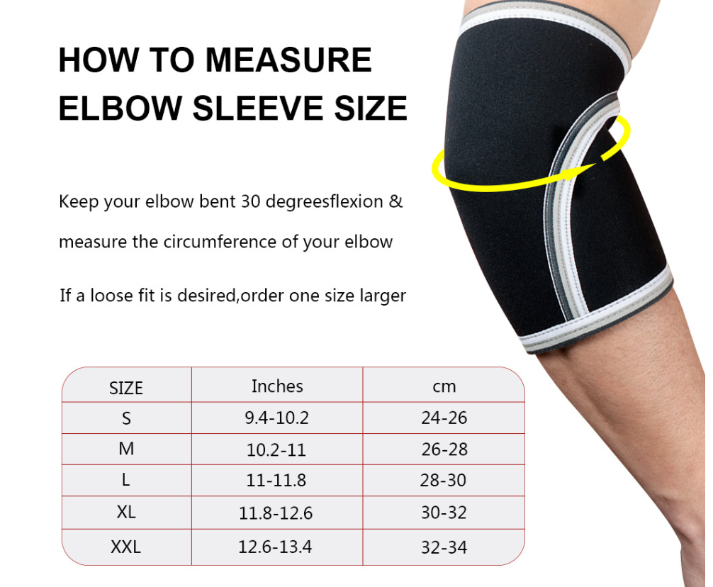 5、SIZING CHART: Please use sizing chart in listing images to order the correct size. You need to measure your true elbow size with a flexible tape. If a tight fit is desired, please order one size smaller than your measurement.
