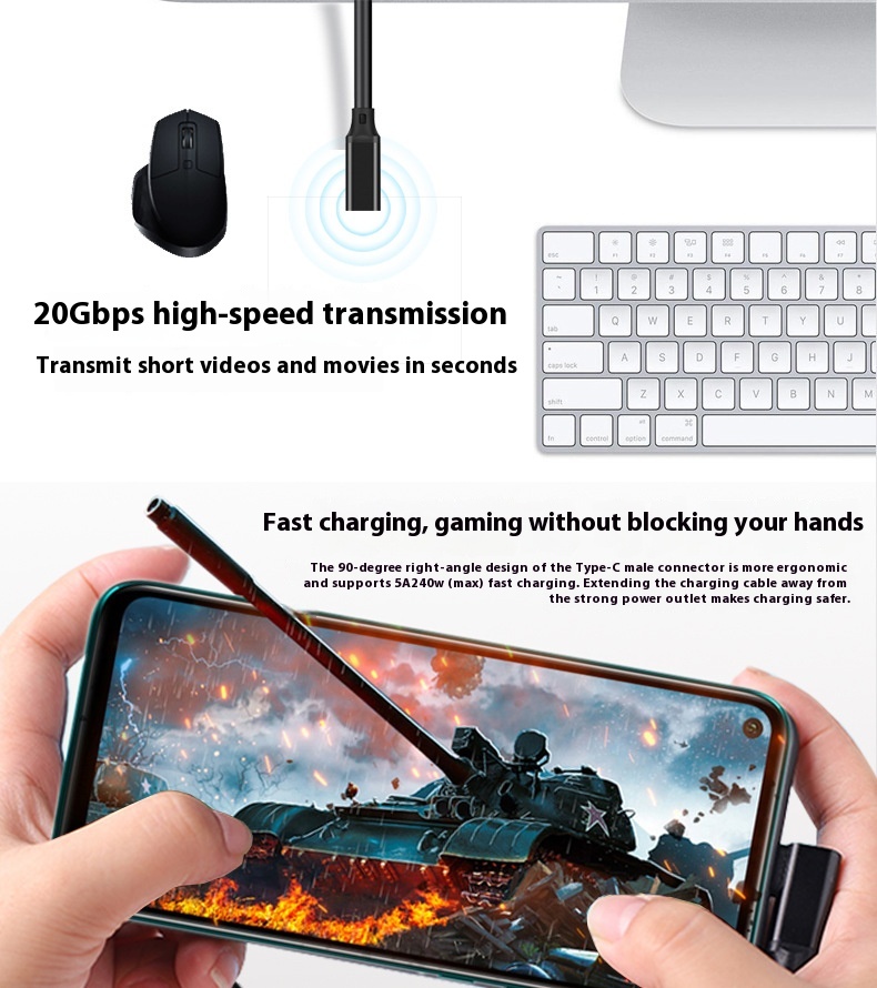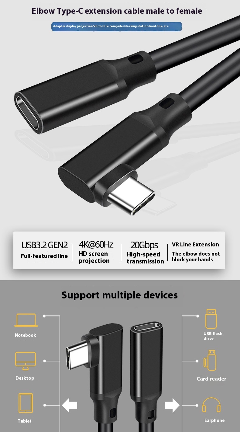 Elbow Type-c Male-to-female Transmission Computer Extension Cable