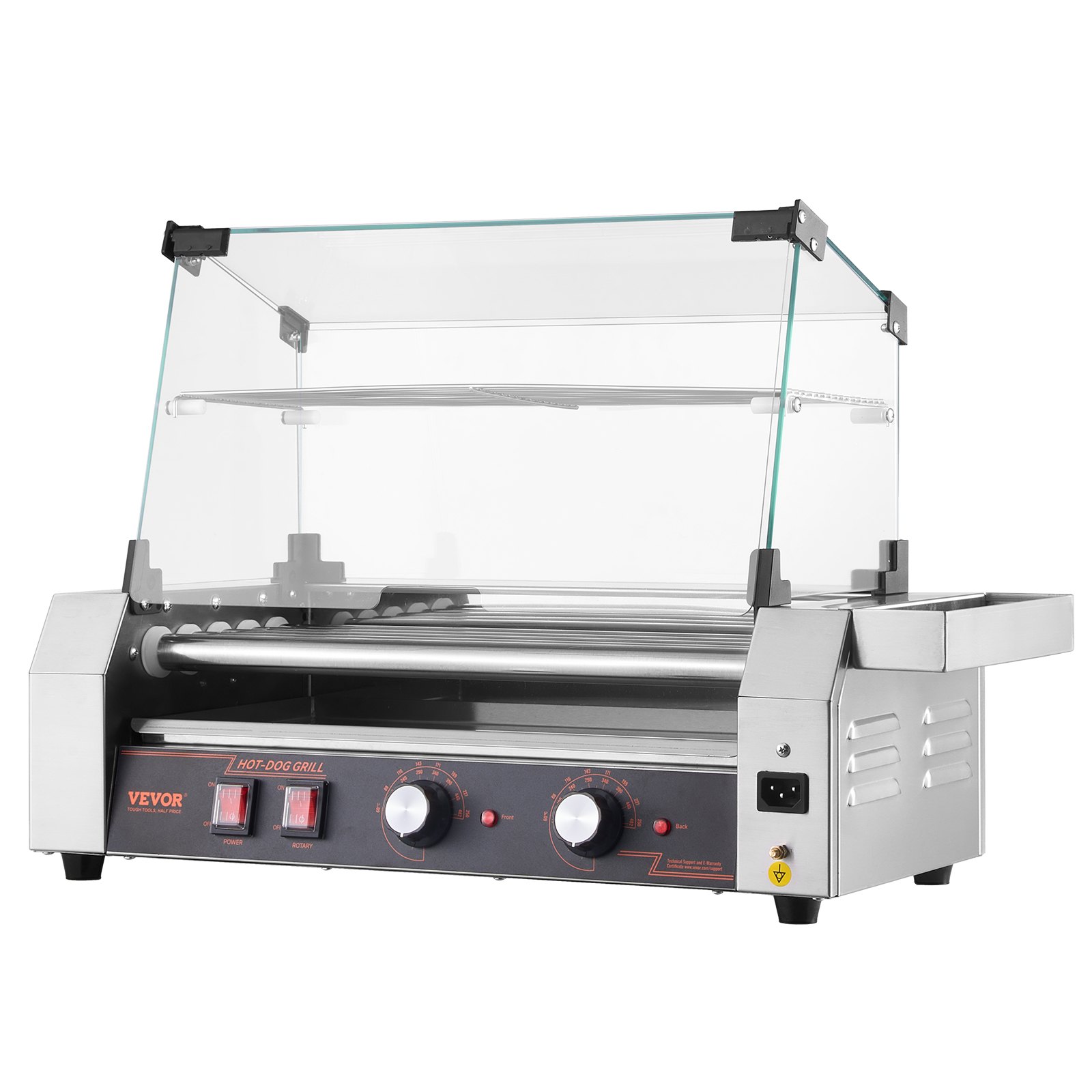 Built to Impress & Last: Built with a durable, sleek stainless steel frame, this commercial hot dog roller provides not only a modern look but also long-lasting performance. The glass hood is offered to block dirt and keep food warm, thus shortening cooking time. The removable drip tray keeps your kitchen clean and washing to a minimum
