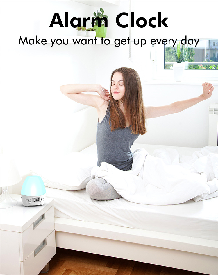 The air humidifier can be used not only as a humidifier in the room, but also as an alarm clock. Besides, it can be used for lighting as night light that have 7 colors changing, which will meet various needs for users.
