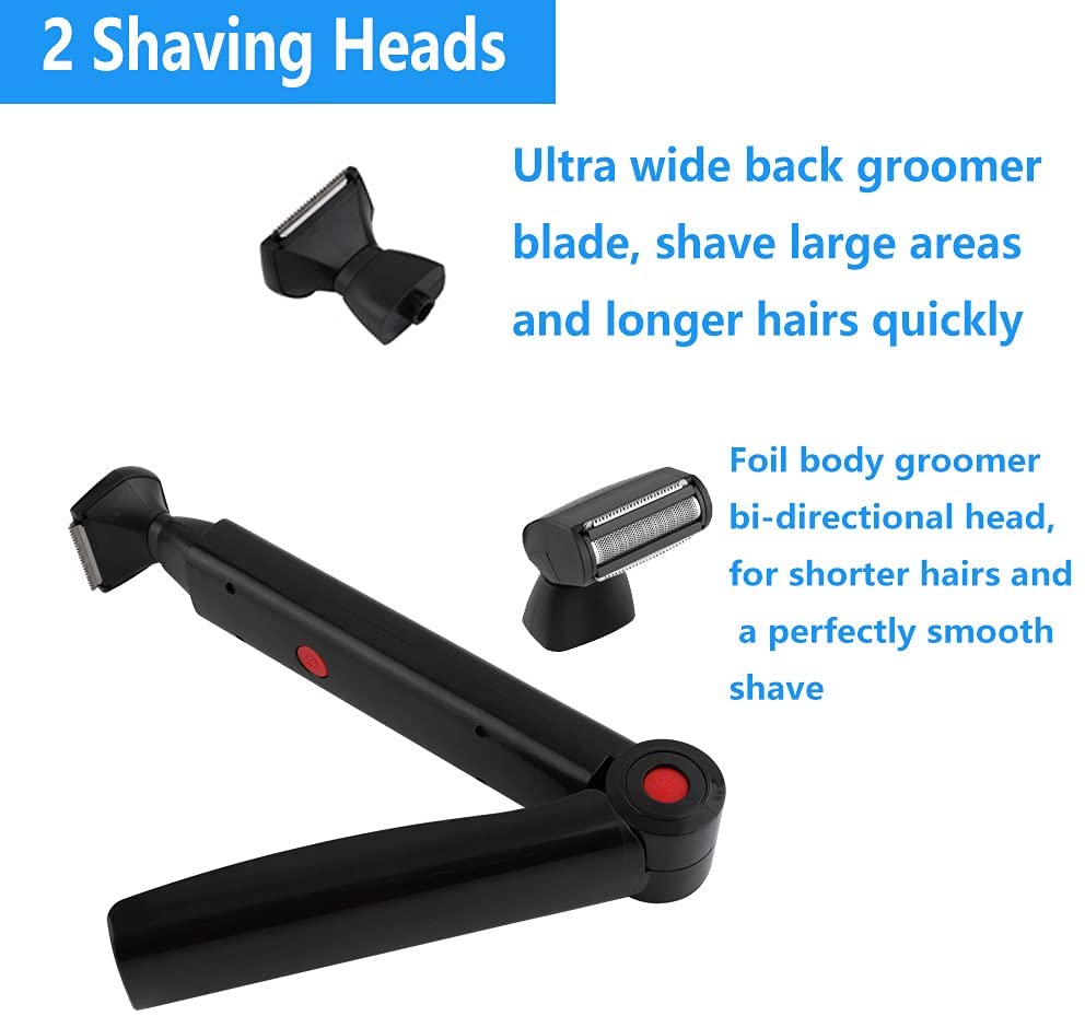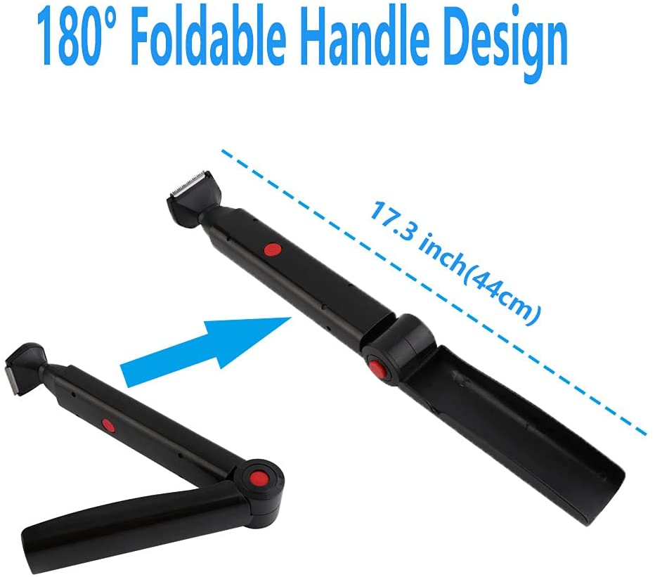 【180 ° FOLDABLE HANDLE DESIGN】 180 ° foldable handle design increasing the length to 17.3 inches (44cm) long, the adjustable handle locks into place at different lengths to reach even the middle parts and most difficult lower back. You can now remove body hair anywhere on your own.