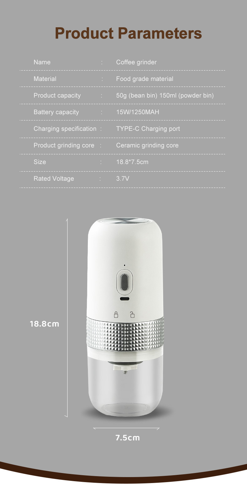 • USB Charging :Conveniently charge your coffee grinder with a USB cable, making it easy to use and saving you time.