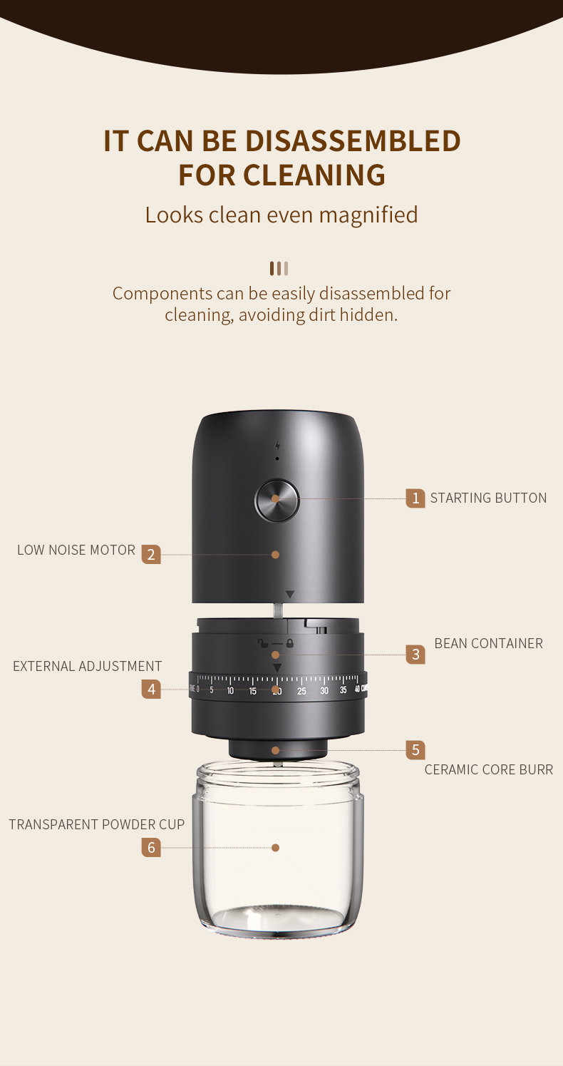 Electric Coffee Grinder With External Adjustment Dial Home Use Manual Pour-Over Rechargeable Electric Coffee Grinder