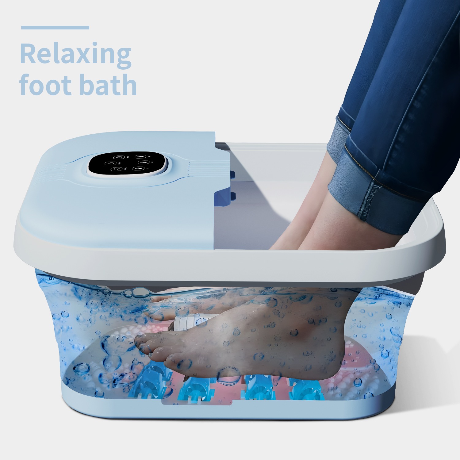 Electric Collapsible Foot Spa With Heat, Foot Massager With 16 Massage Rollers & Bubble, Foot Bath Massager For Home Use,Remote Control