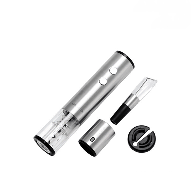 The Set Includes: Electric Bottle Opener*1, Wine Stopper*1, Quick Decanter*1, Round Paper Cutter*1,Manual *1, AA Battery *4