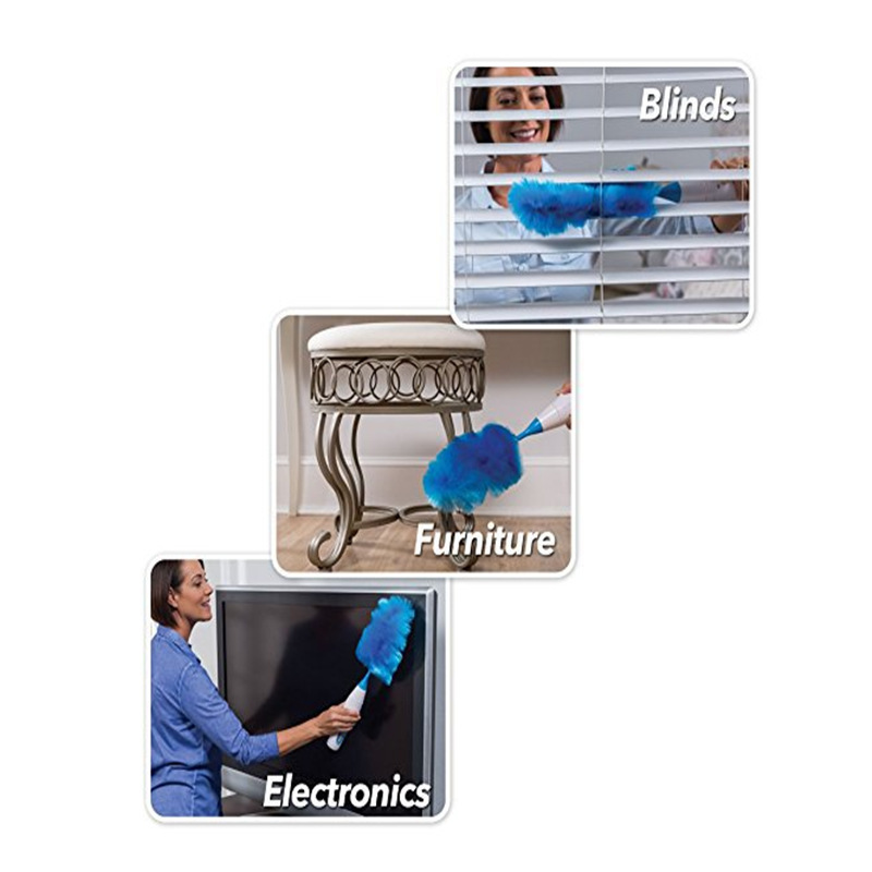 2. Electrostatically-charged bristles attract and trap dust making it the perfect ceiling fan cleaner, blind cleaner, mini blind duster, pet hair duster, cobweb duster, and baseboard cleaner