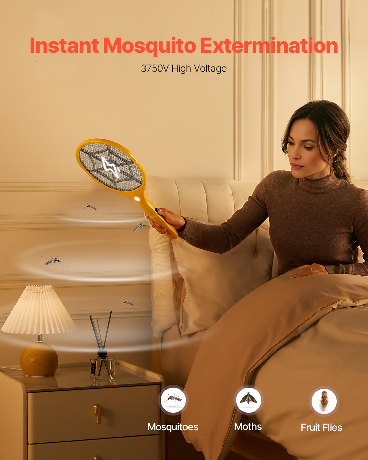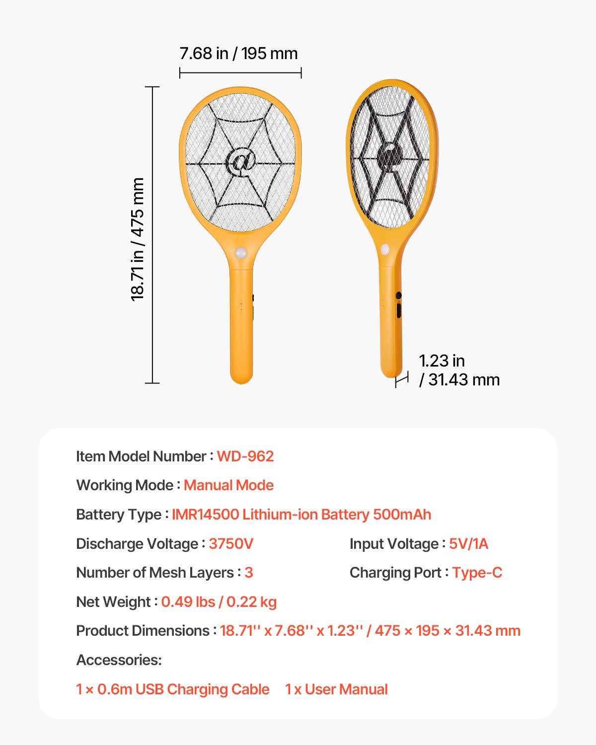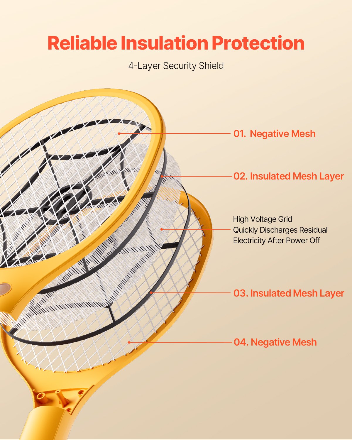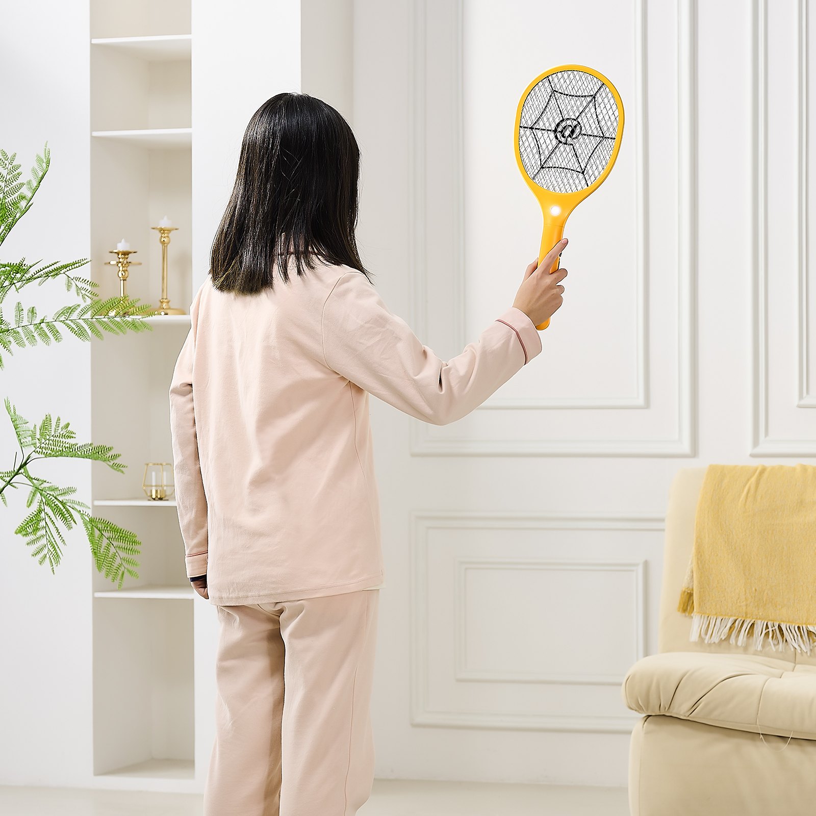 Electric Fly Swatter With 3 Layers Mesh And 500mAh Battery Yellow Black