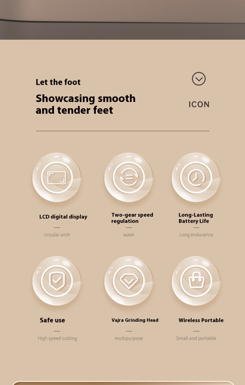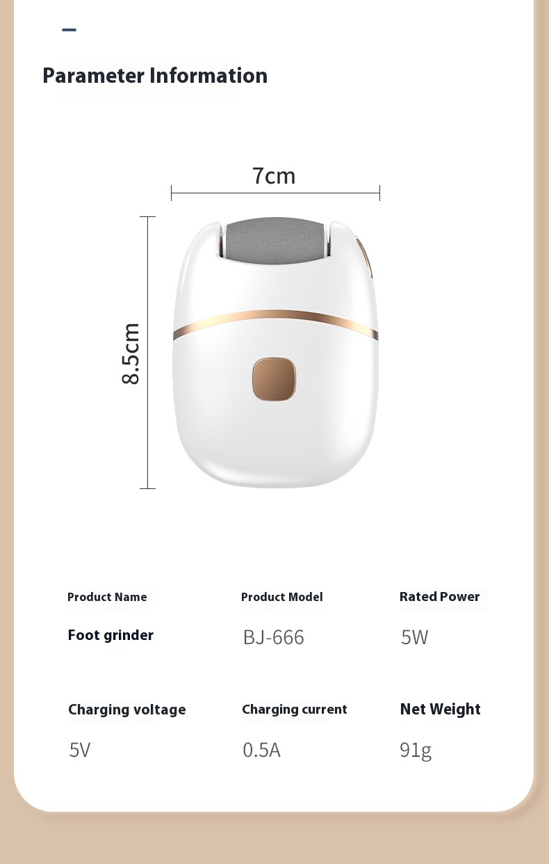 Ergonomic Design: For user convenience, the handle of the electric foot grinder usually adopts an ergonomic arc design with a moderate length, ensuring a comfortable grip. It can easily reach all parts of the foot, such as toes, soles, and heels, making the operation more labor-saving and convenient.