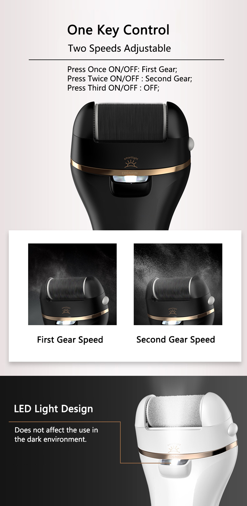 3. Powerful, equipped with two types of grinding heads, which can effectively remove dead skin and calluses.
