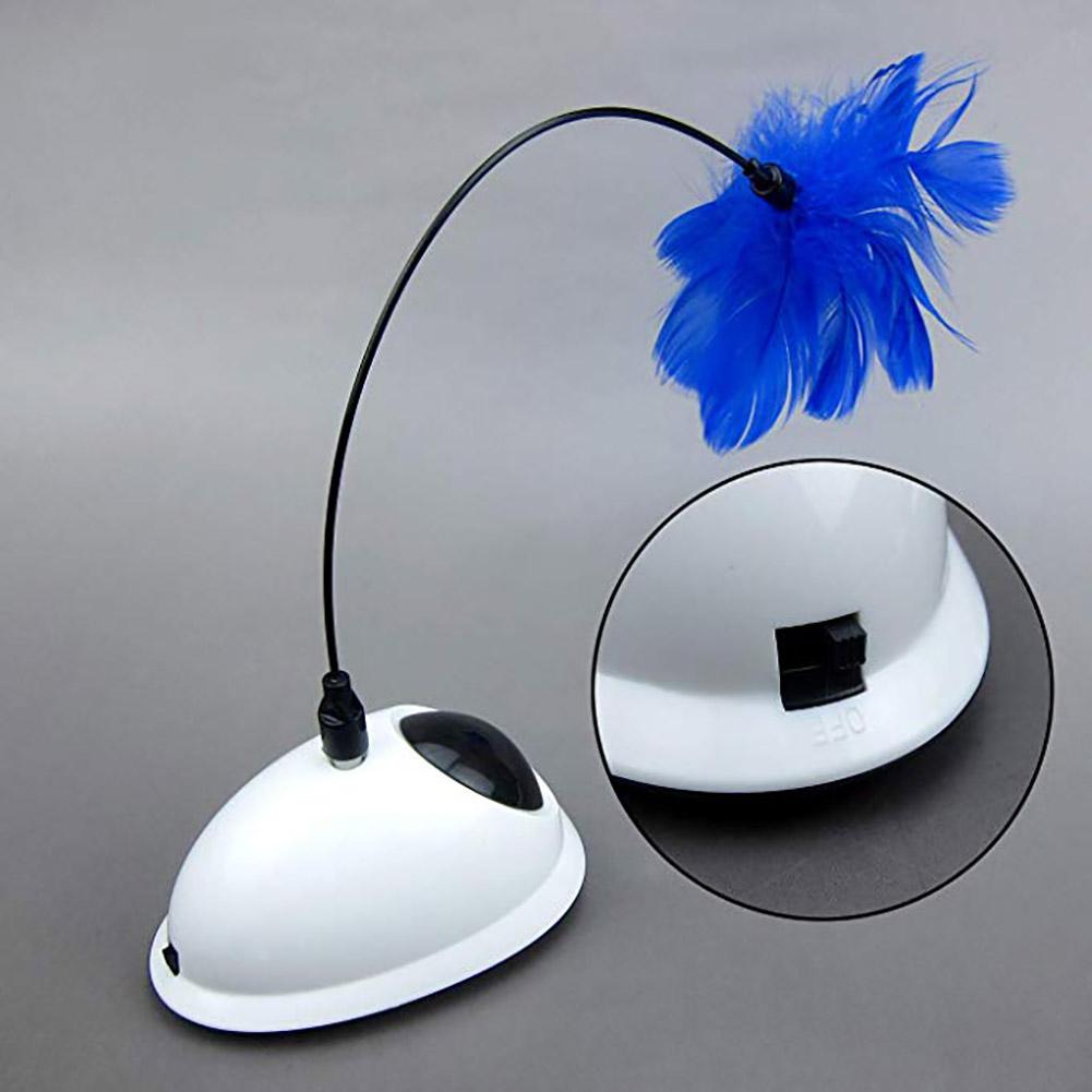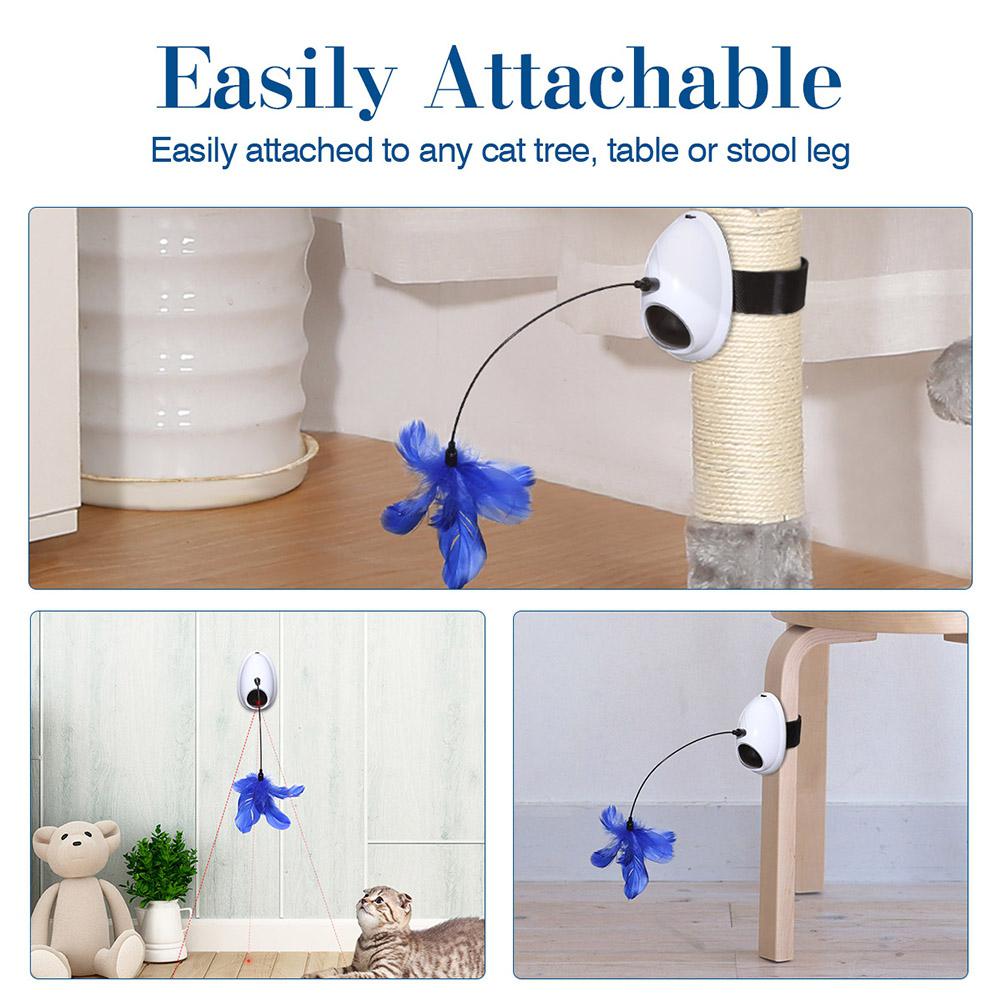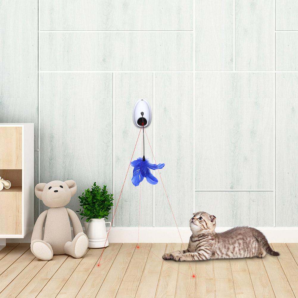 The feather toy will rotate 360 degrees irregularly, the lasering pointer will point to different places as well. Eliminate cat's loneliness and satisfy their instinct.